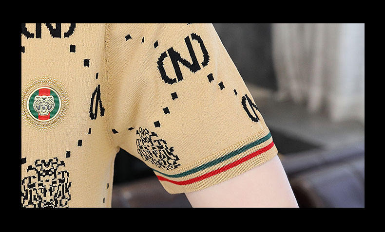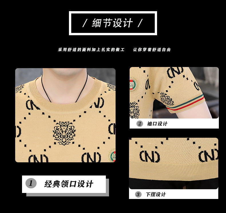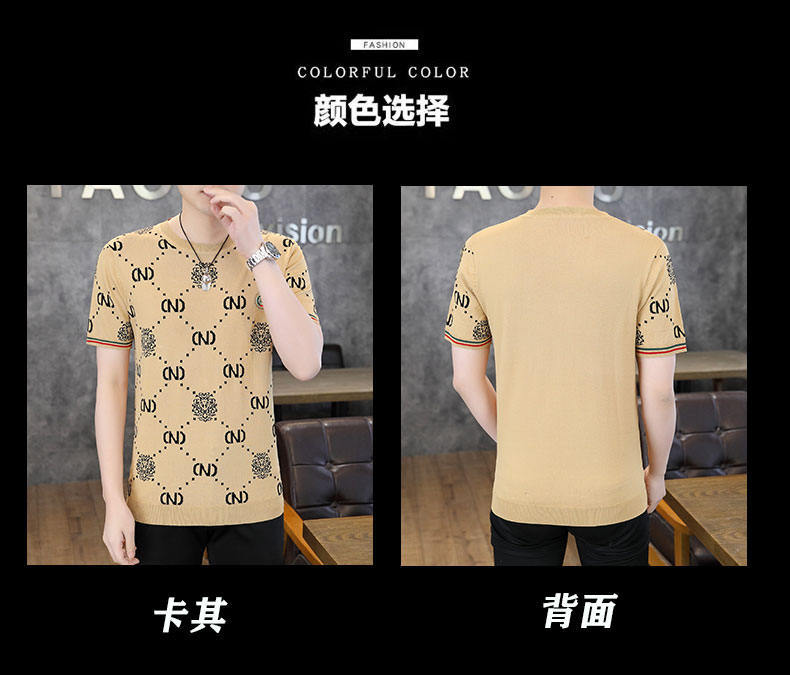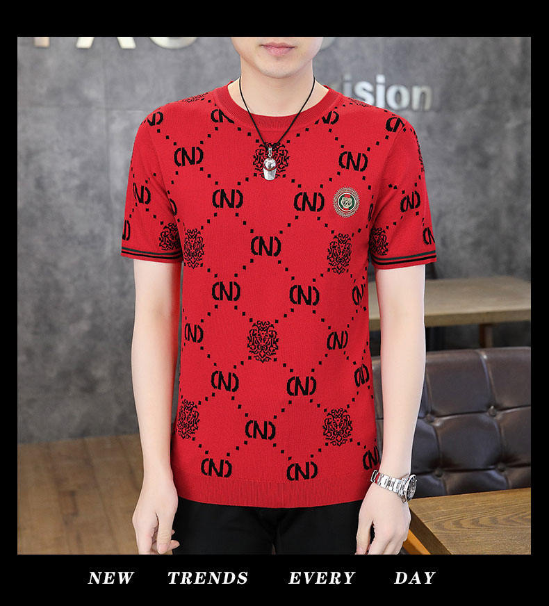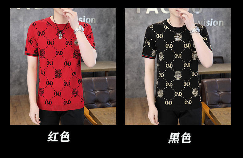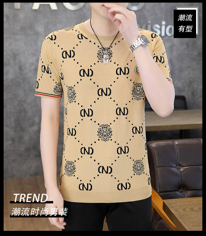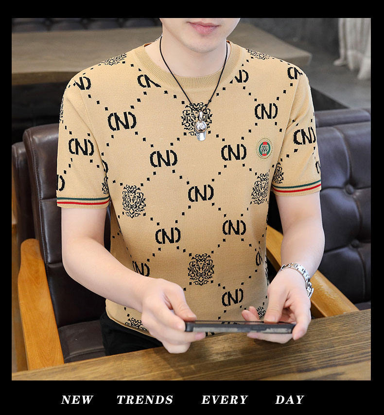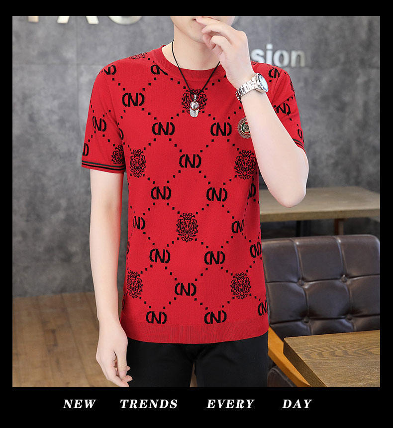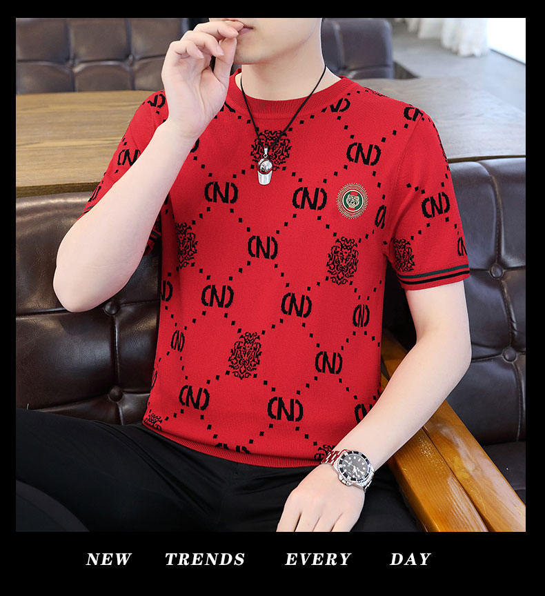 자수 니트 티셔츠 남성 여름 트렌디 브랜드 얇은 흰색 반팔 최고급 남성 아이스 실크 크루 넥베이스 셔츠스토어 가기