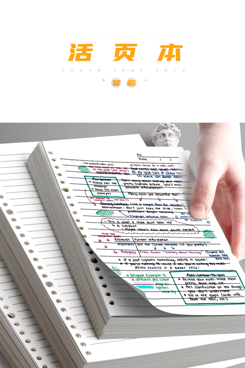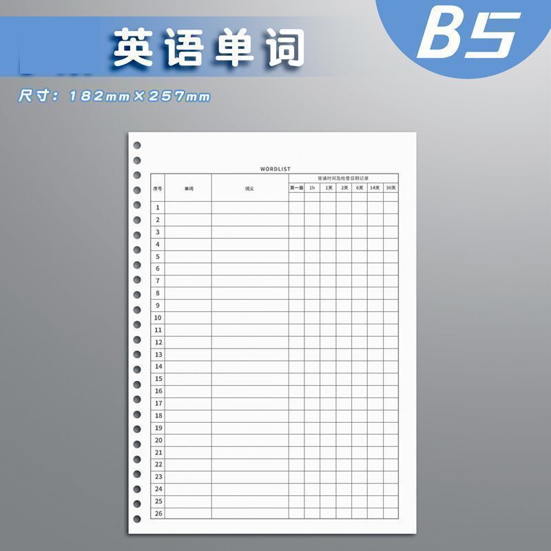 느슨한 잎 노트북 코어 범용 교체 b5 느슨한 잎 종이 두꺼운 코넬 노트북 a5 핵심 교체 학생 대학원 입학 시험