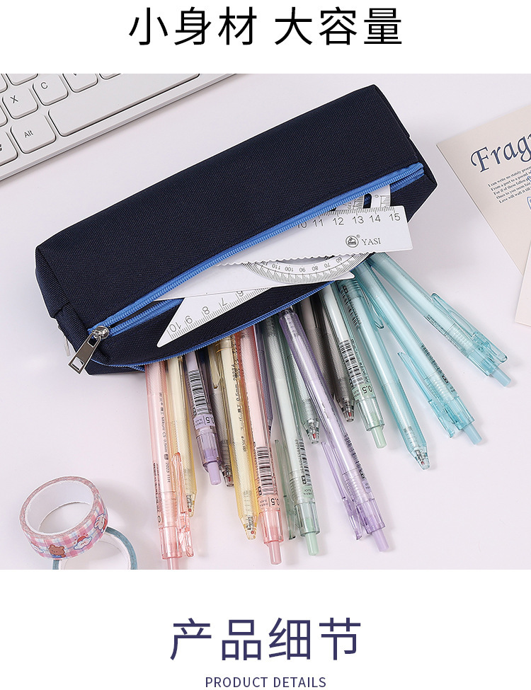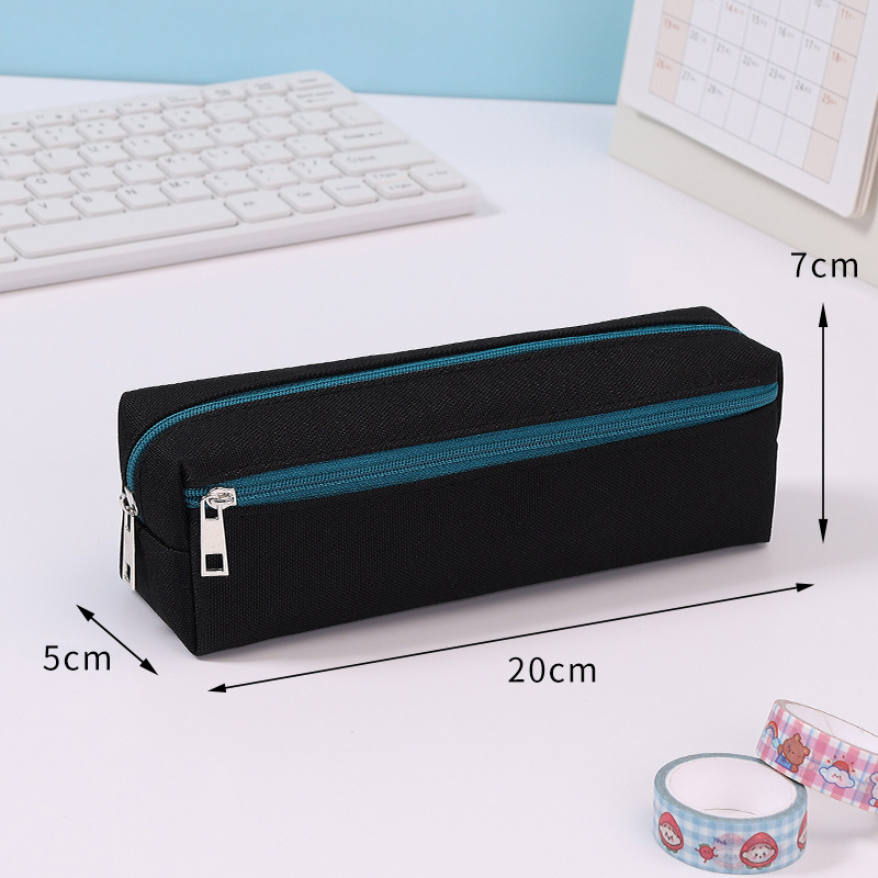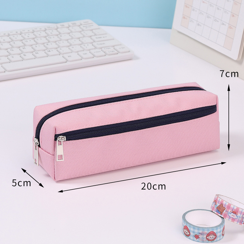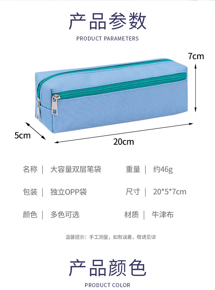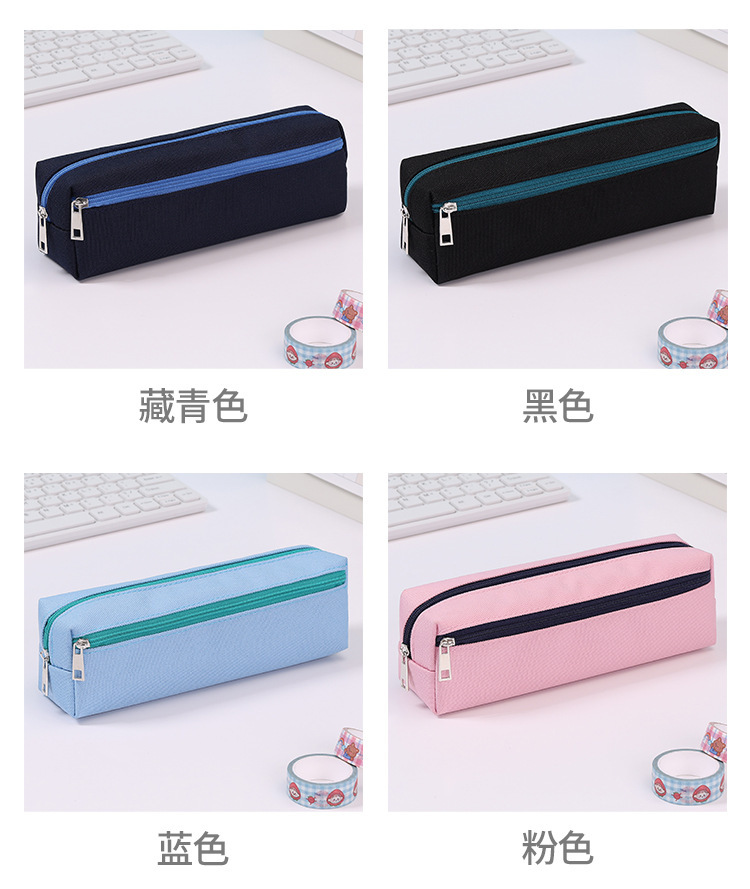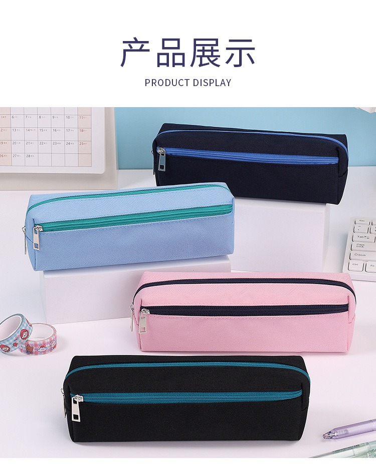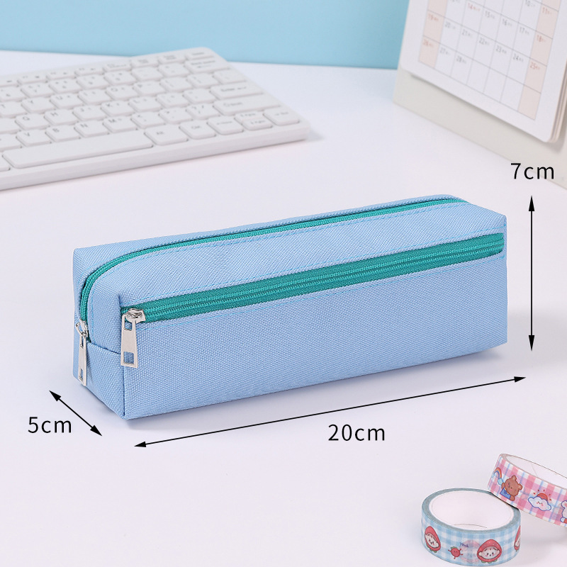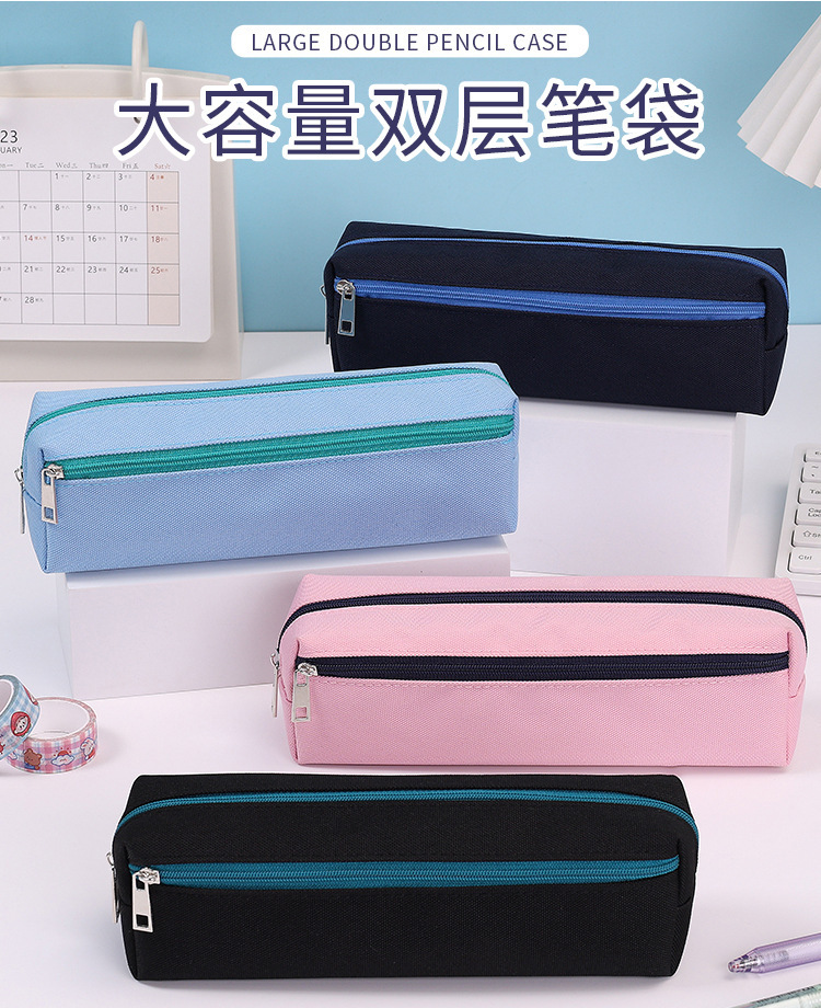 솔리드 컬러 더블 지퍼 연필 케이스 더블 레이어 다기능 문구 가방 간단한 도난 방지 문구 상자 초등 학생을위한 휴대용 연필 케이스