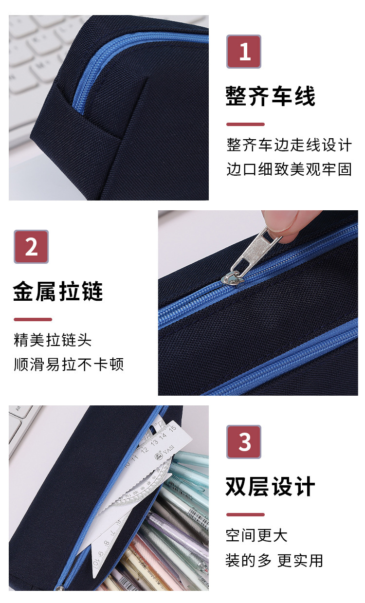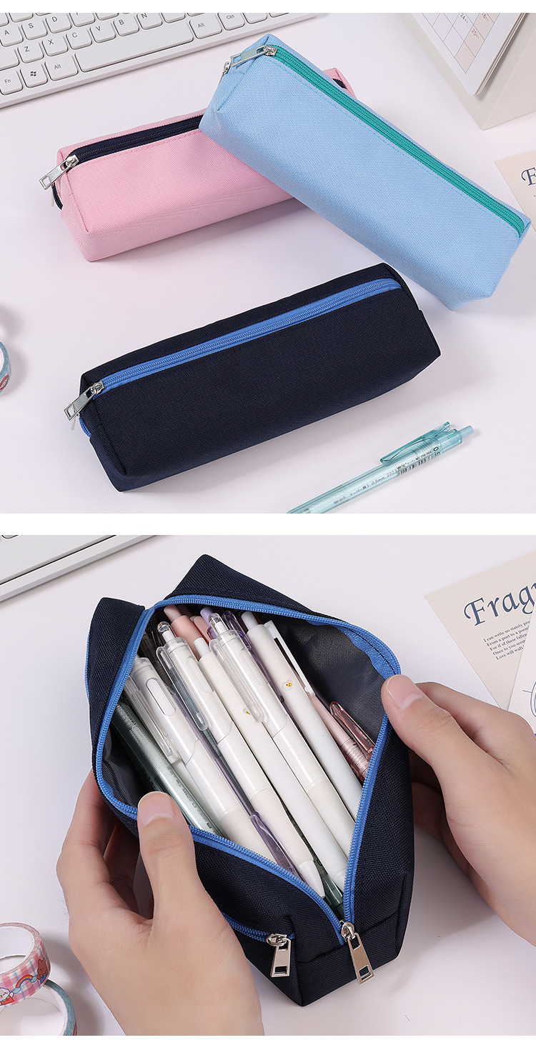 솔리드 컬러 더블 지퍼 연필 케이스 더블 레이어 다기능 문구 가방 간단한 도난 방지 문구 상자 초등 학생을위한 휴대용 연필 케이스스토어 가기