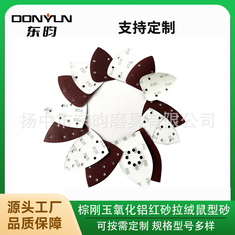 다크 브라운 커런덤 알루미나 사포 재고 도매 98 × 140mm 삼각형 모래 특수 모양의 사포 백 벨벳 모래 디스크 연삭 시트스토어 가기