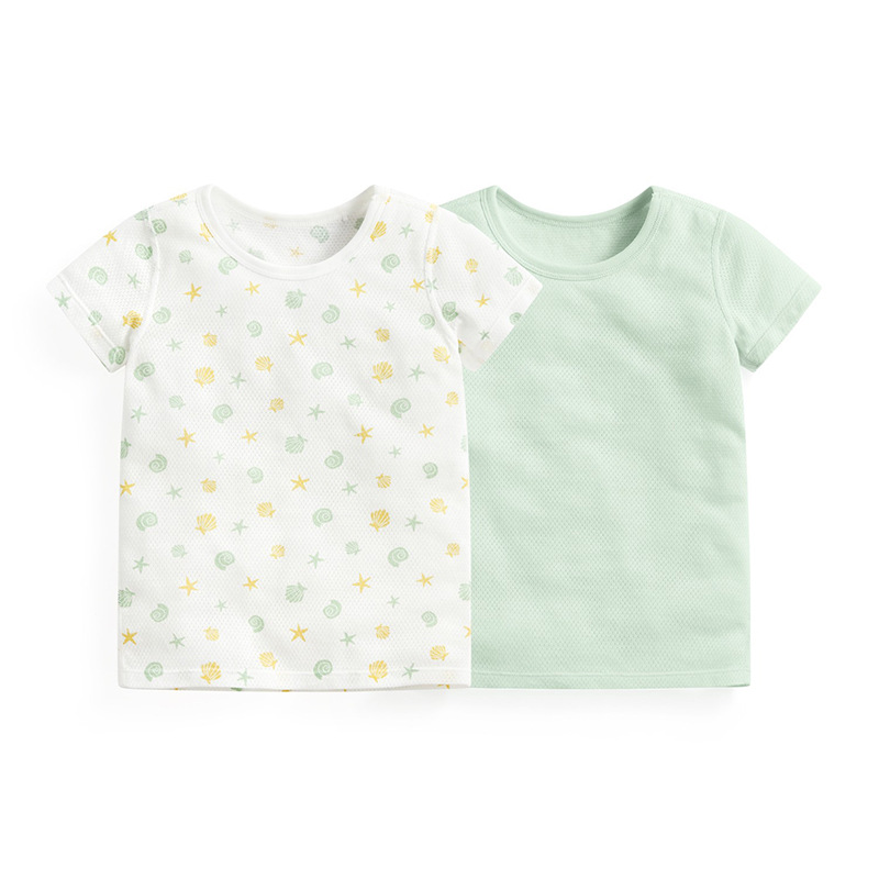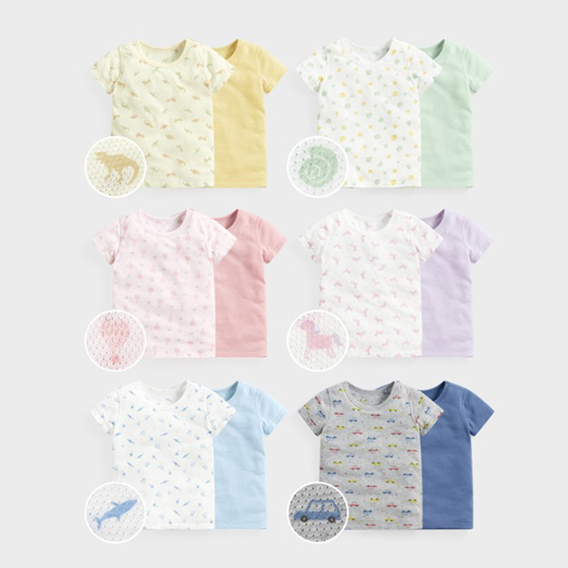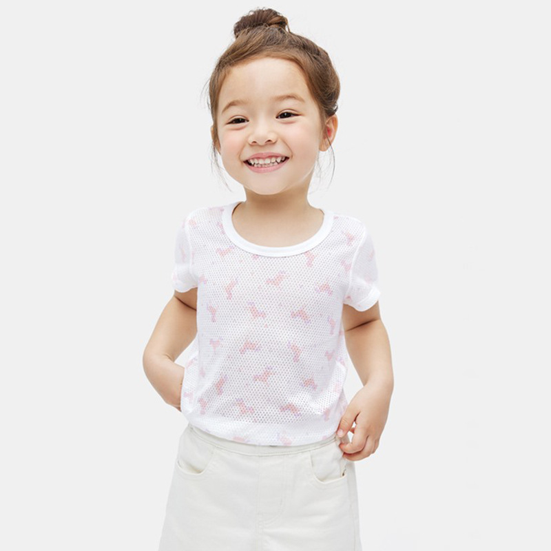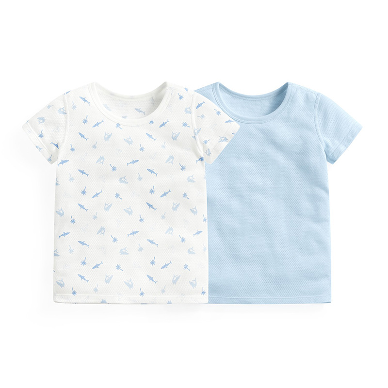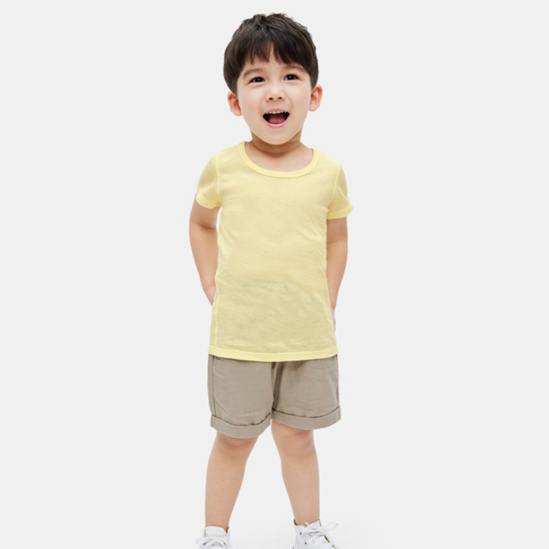 여름 어린이 메쉬 티셔츠 순수한면 초박형 통기성 반소매 셔츠 세트 소년 소녀 에어컨 룸 반소매 T 잠옷스토어 가기