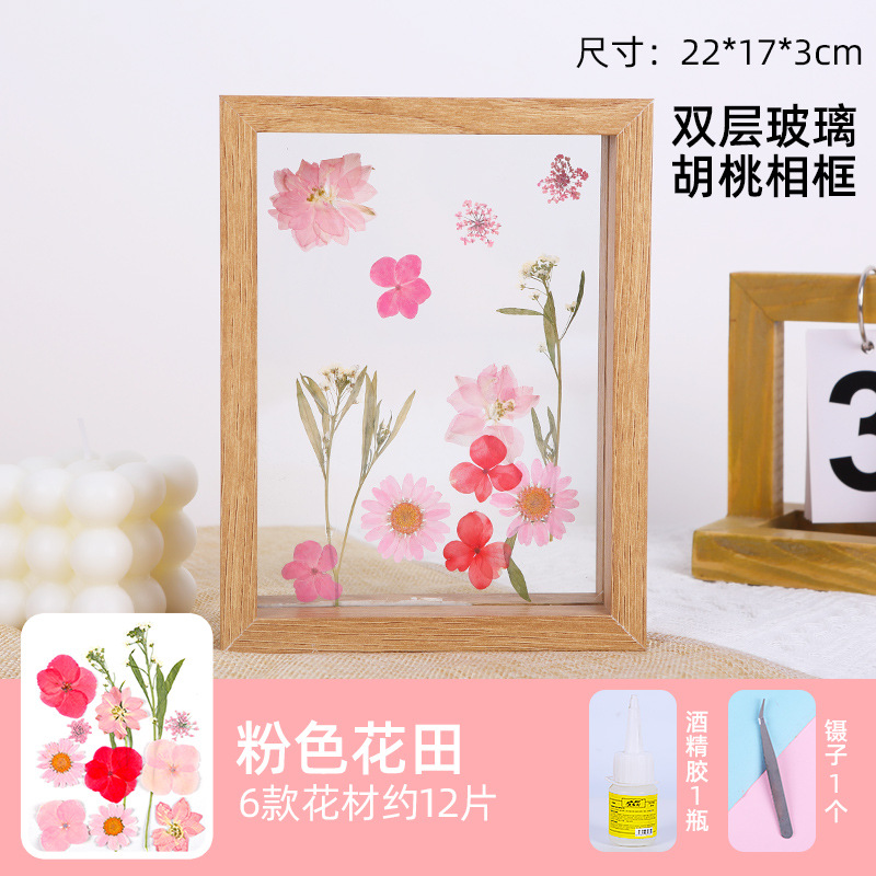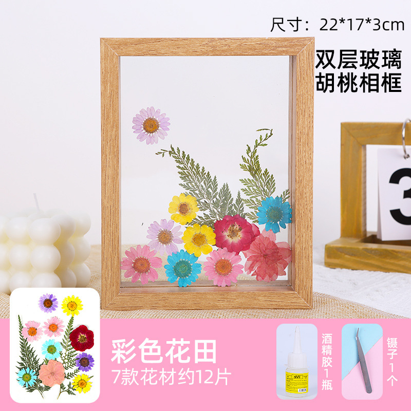 • 8 인치 더블 유리 프레임 컬러 꽃 필드 접착제 핀셋