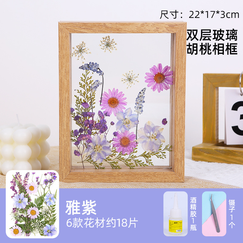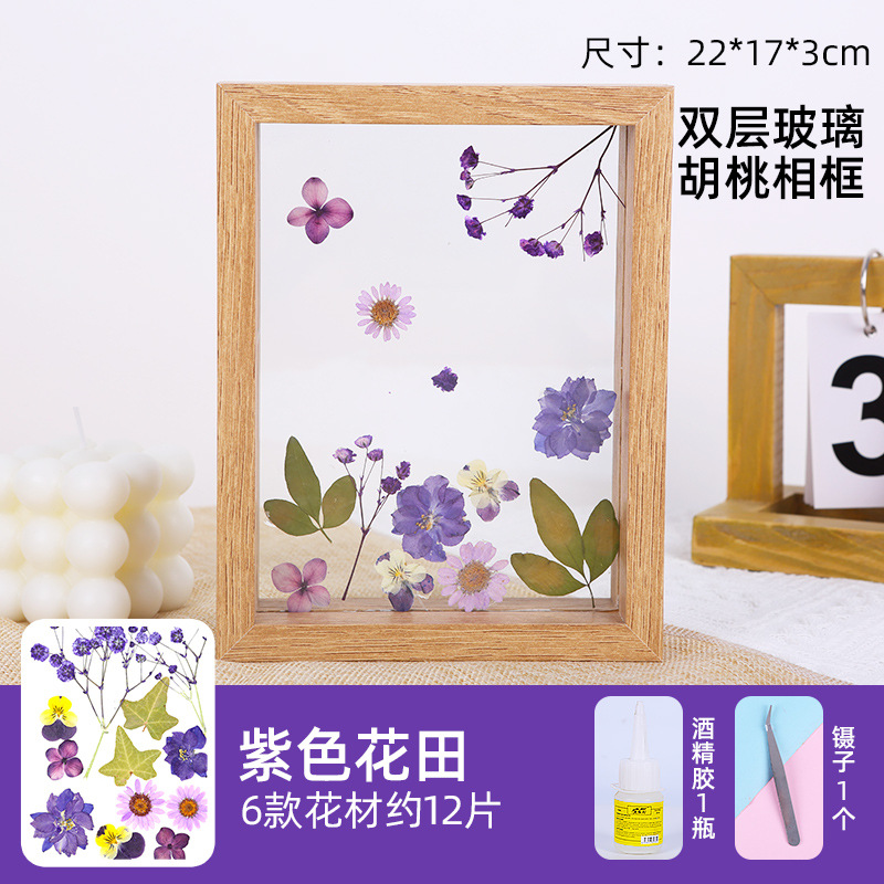 • 8 인치 더블 유리 프레임 보라색 꽃밭 접착제 핀셋