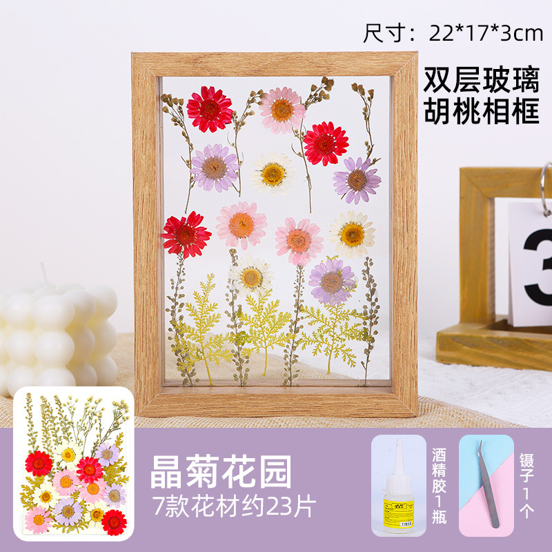 • 8 인치 더블 유리 프레임 크리스탈 국화 정원 접착제 핀셋