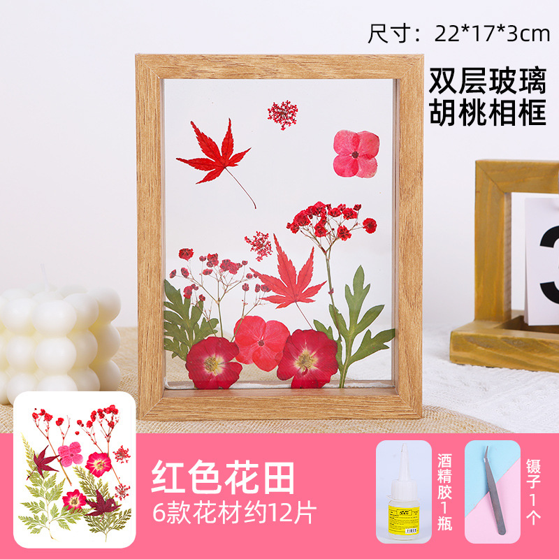 • 8 인치 더블 유리 프레임 붉은 꽃 필드 접착제 핀셋