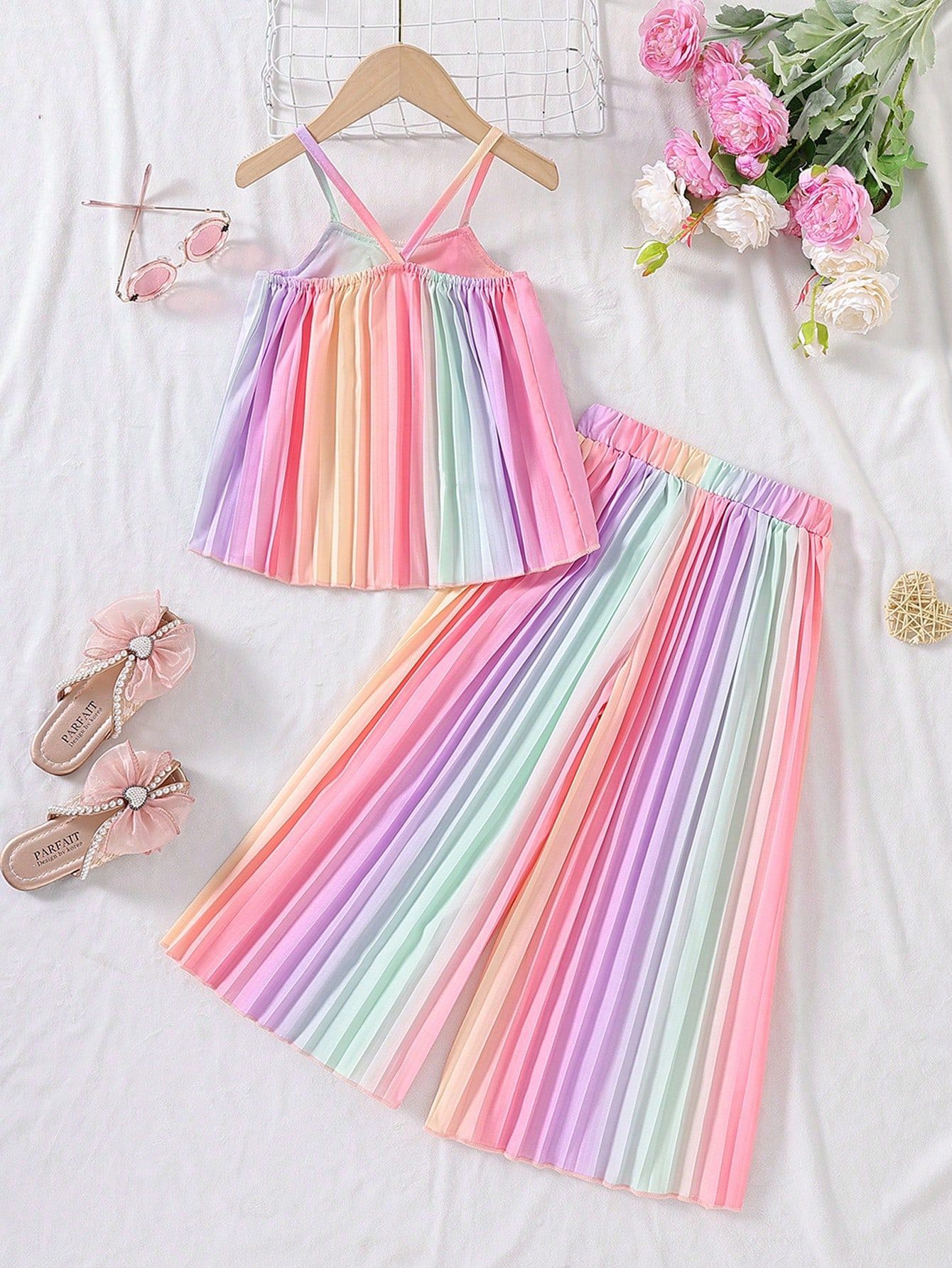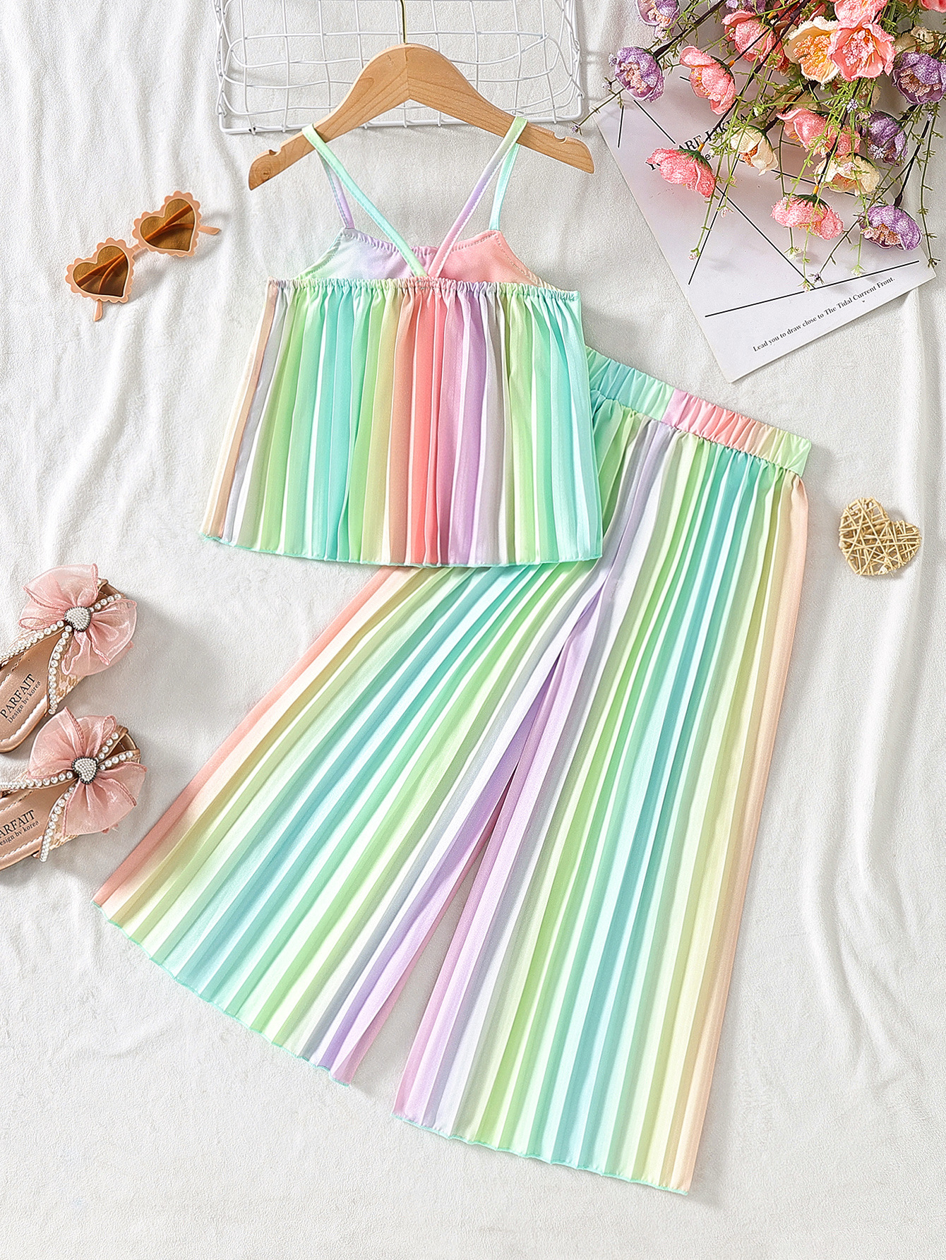 2024 여름 새로운 도착 전자 상거래 달콤한 신선한 소녀 슬링 주름 바지 투피스 세트