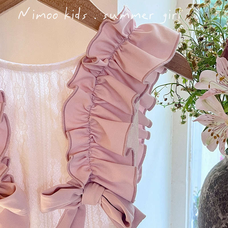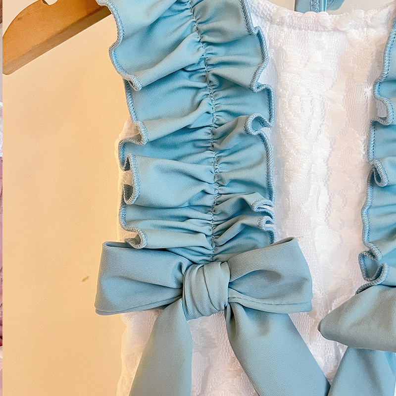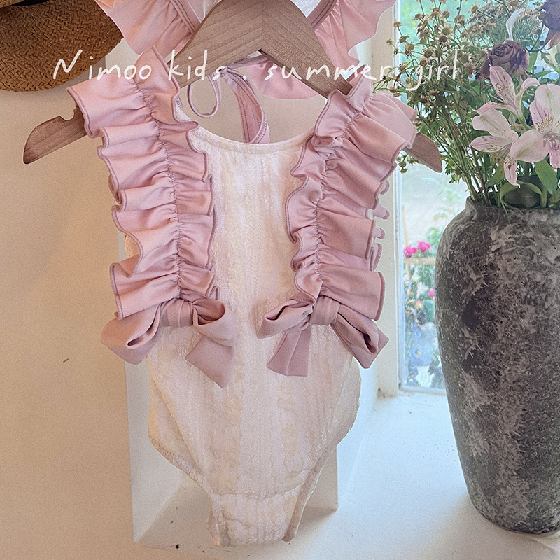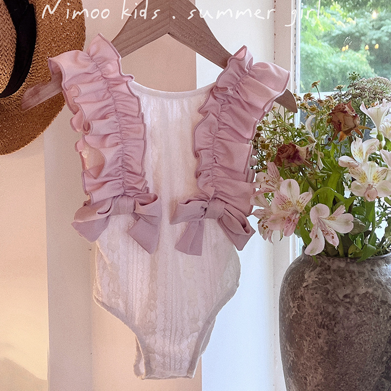 새로운 소녀들의 달콤한 레이스 활 결합 된 모리 어린이 중소 소녀 해변 휴가 수영 세트