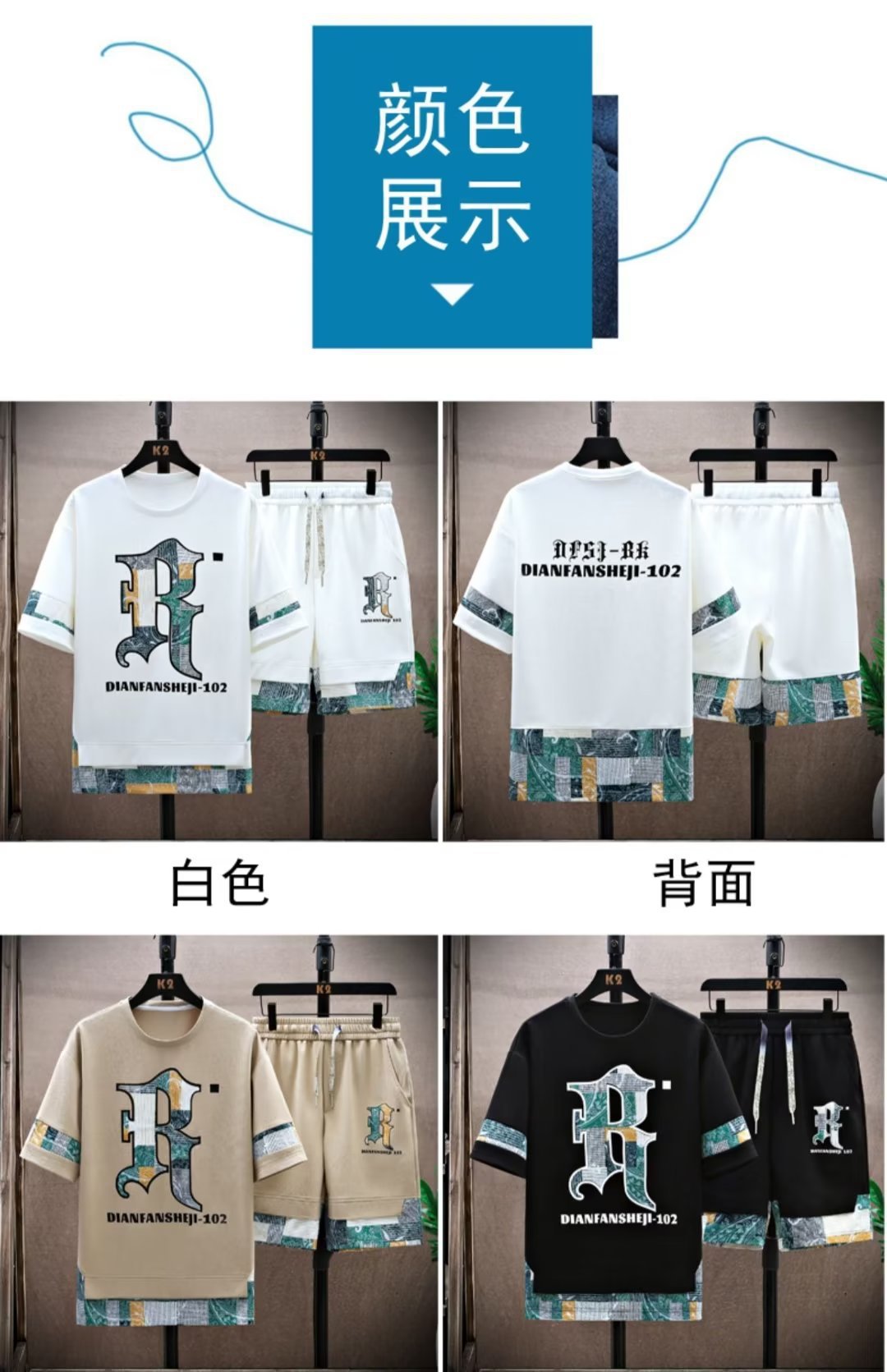캐주얼 스포츠 세트 남성 패션 브랜드 여름 가짜 투피스 반팔 남성 의류 세트 잘 생긴 패션 학생 의류스토어 가기