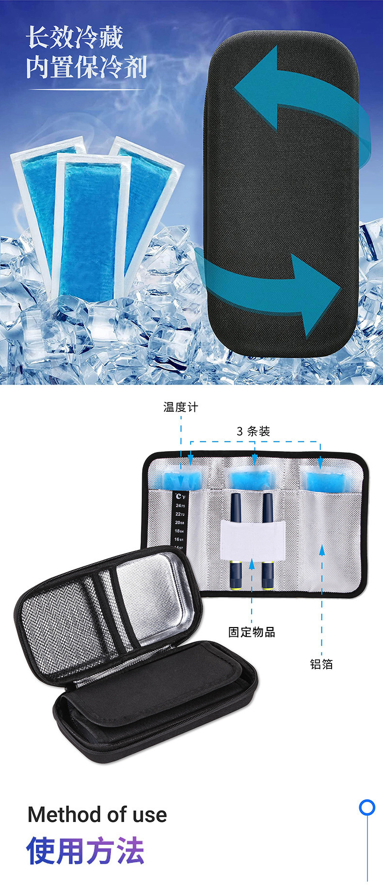 재고 있음: EVA 인슐린 냉장 가방, 환자 휴대용 여행용 보관 인슐린 냉장 케이스, 2~8도, 아이스팩 포함, 무료 배송스토어 가기