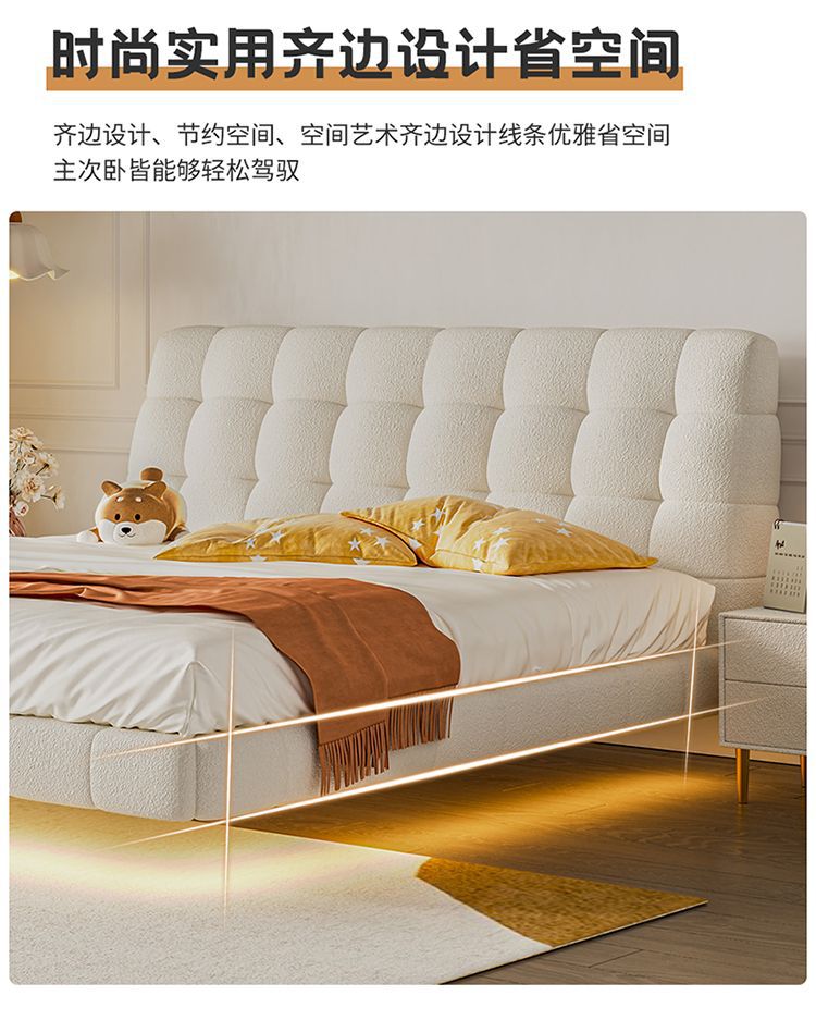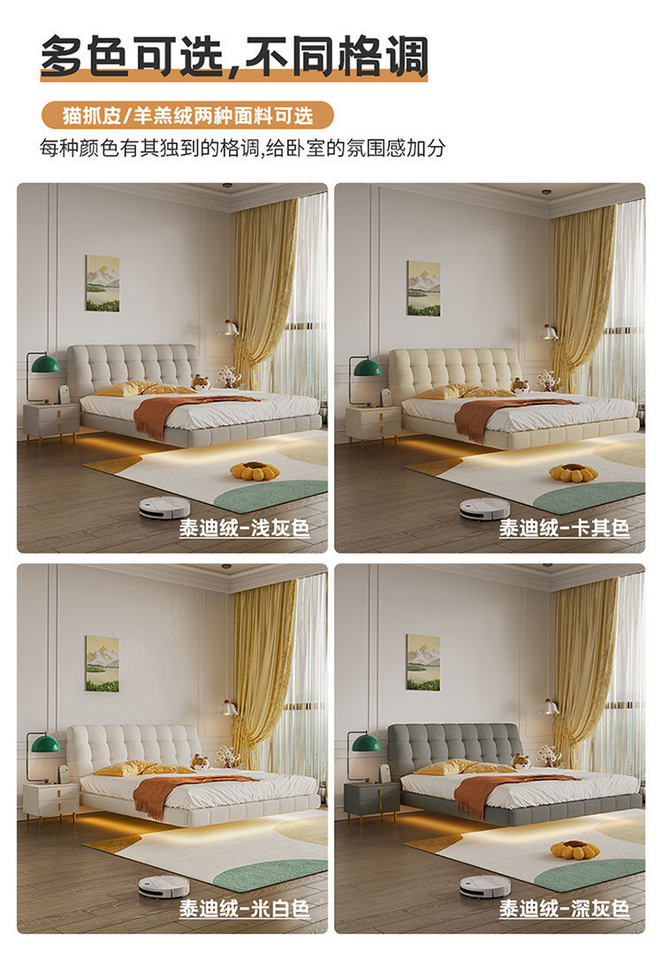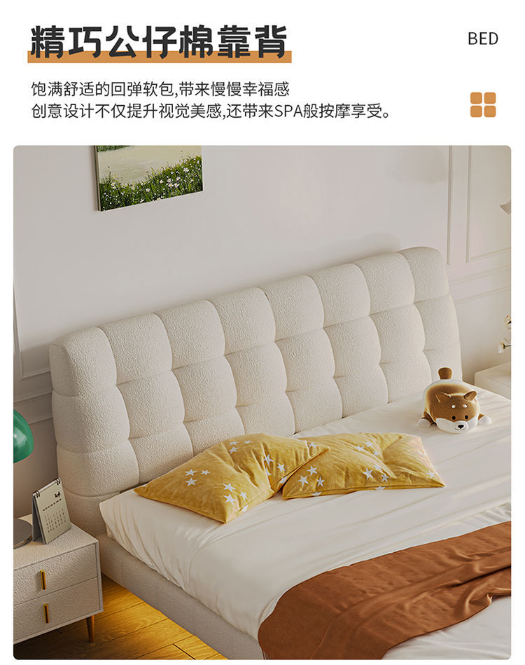 크림 펑윈 퍼프 서스펜션 침대 현대 간단한 마스터 침실 두 사람 침묵 바람 서스펜션 소프트 백 테디 벨벳 아트 침대스토어 가기