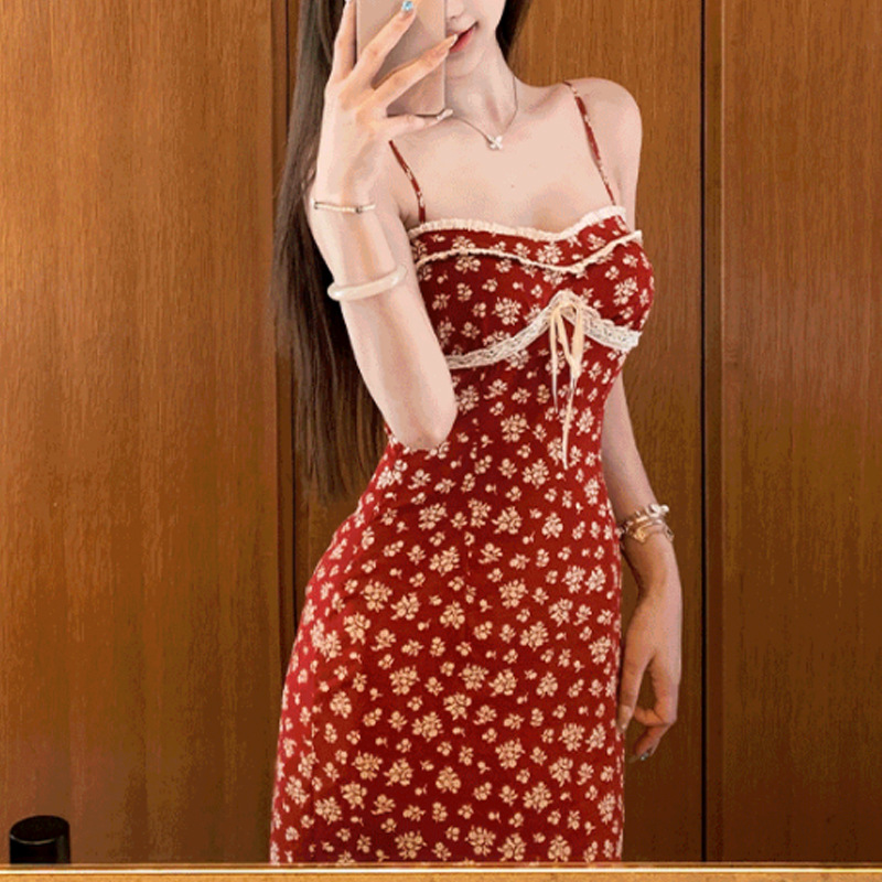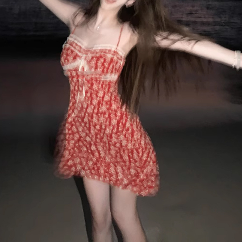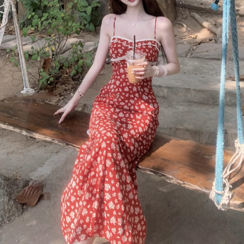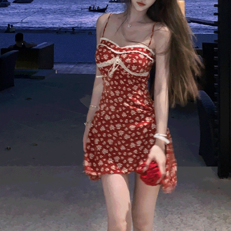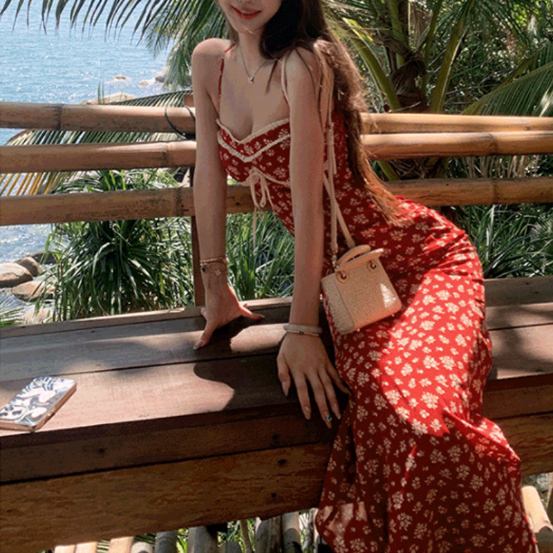 밝은 여름 해변 휴가 원피스 여자 여름 중간 길이/짧은 길어진 꽃 원피스 여자 원피스 2024 원피스스토어 가기