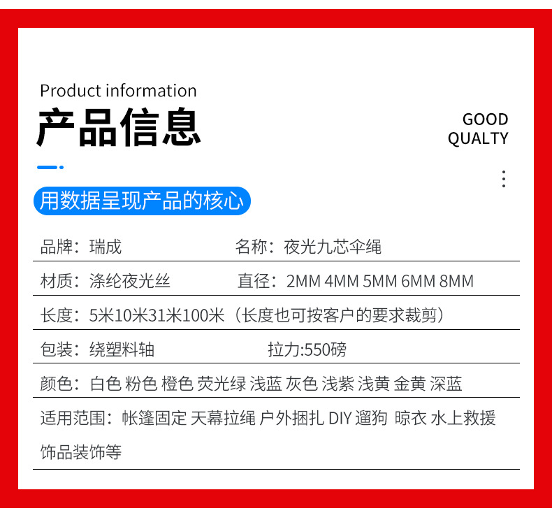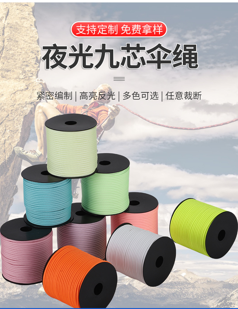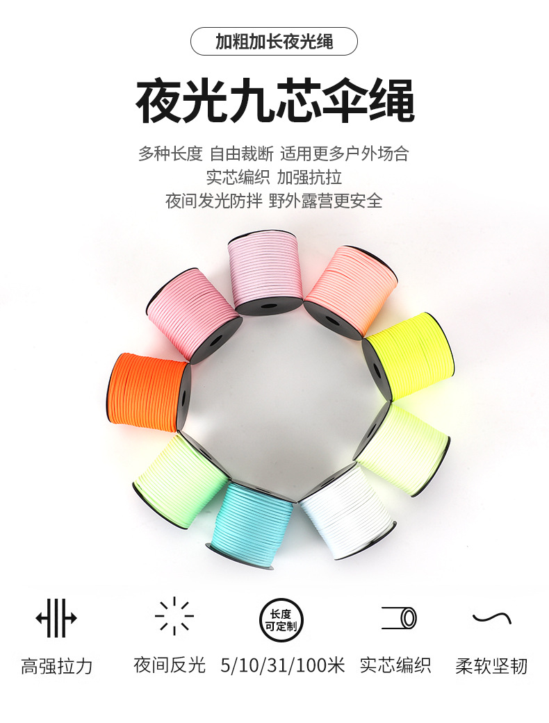 빛나는 9 코어 우산 로프 빛나는 로프 diy 빛나는 꼰 로프 빛나는 텐트 로프 로프 멀티 컬러 옵션