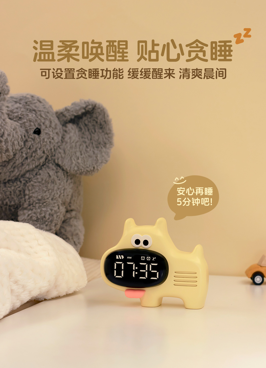 큰 코 개 알람 시계 학생 선물 귀여운 작은 프로그램 전자 시계 충전 미니 스마트 스누즈 창조적 인 알람 시계스토어 가기