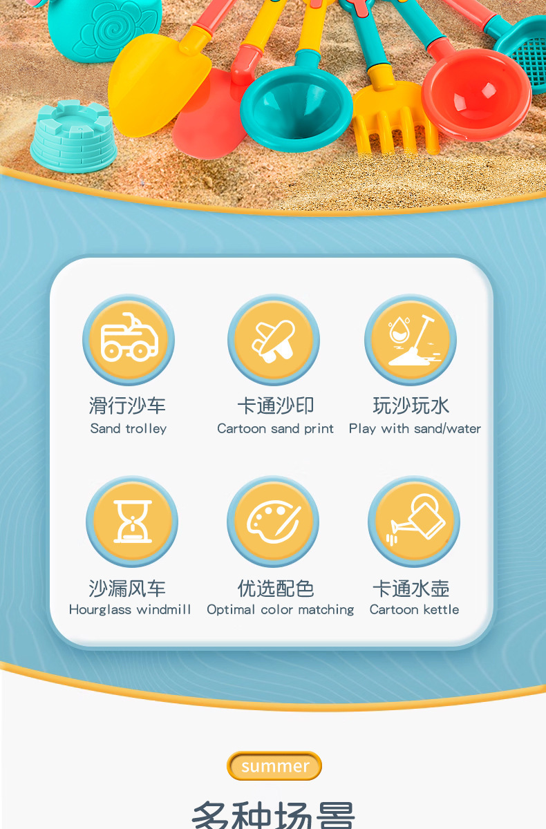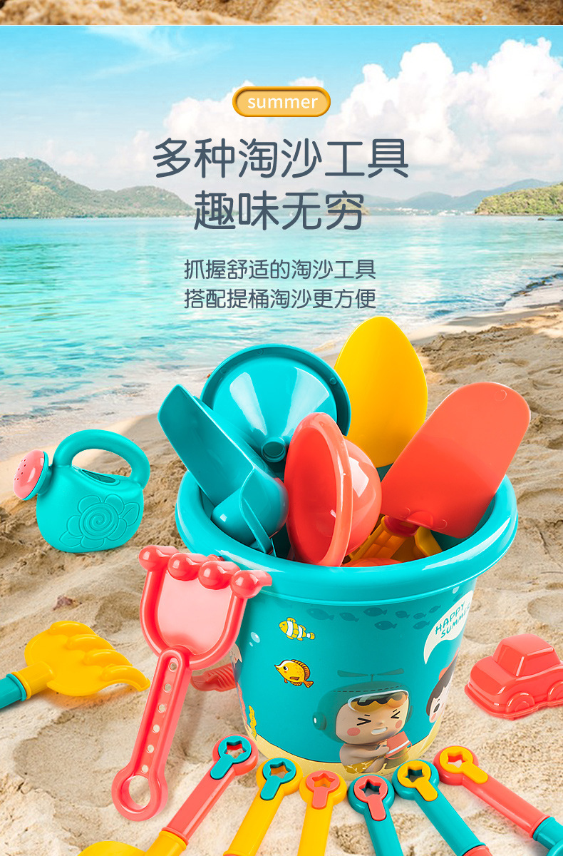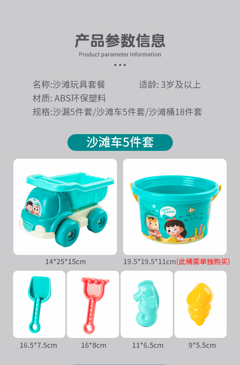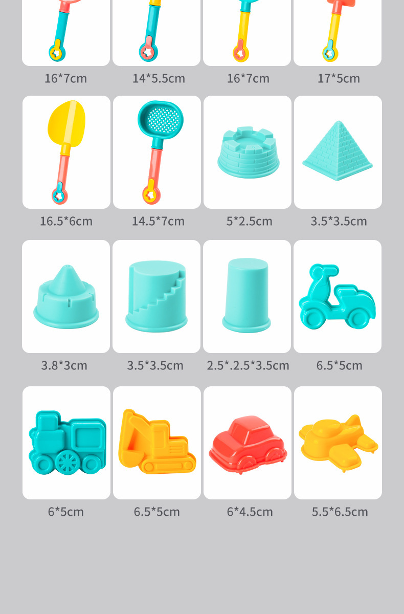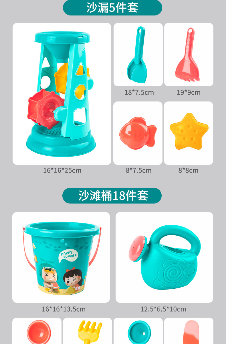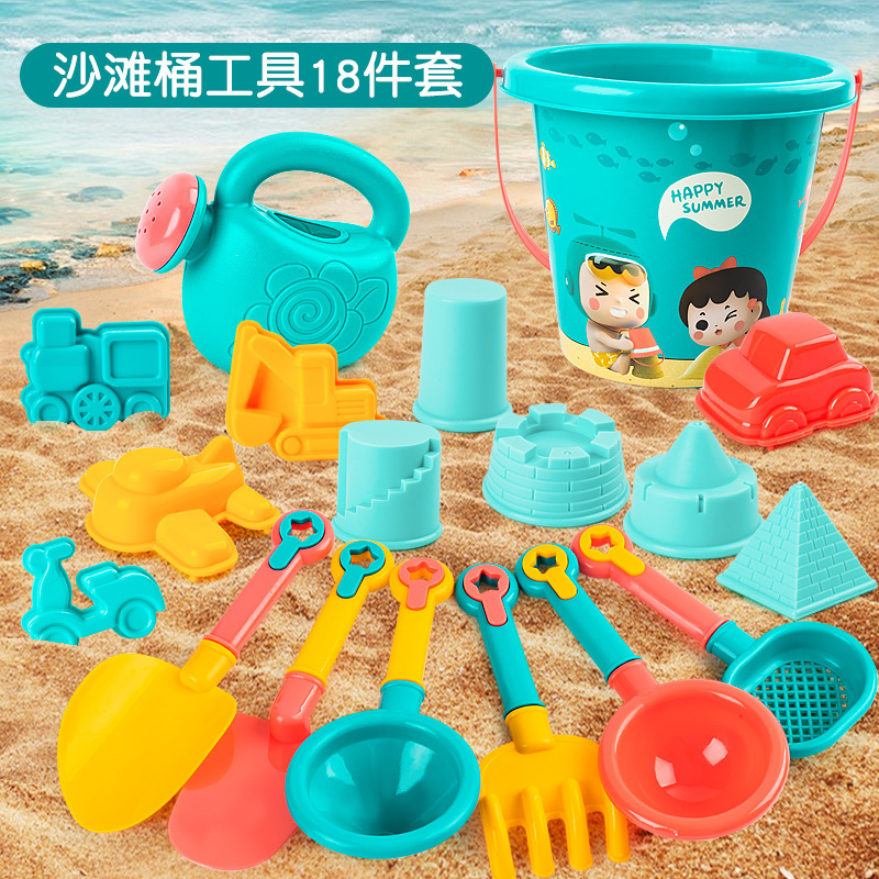 국경 간 핫셀러 어린이 모래 및 토양 파기 물 삽 플라스틱 비치 버킷 세트 모래 풀 비치 장난감 선물 18