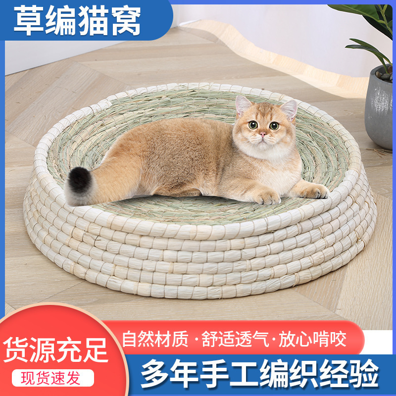 밀짚 고양이 둥지 큰 옥수수 피부 애완 동물 둥지 계란 둥지 개 둥지 손으로 짠 50cm 고양이 발 보드스토어 가기