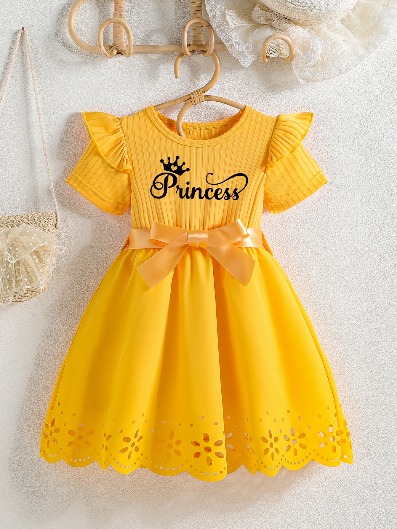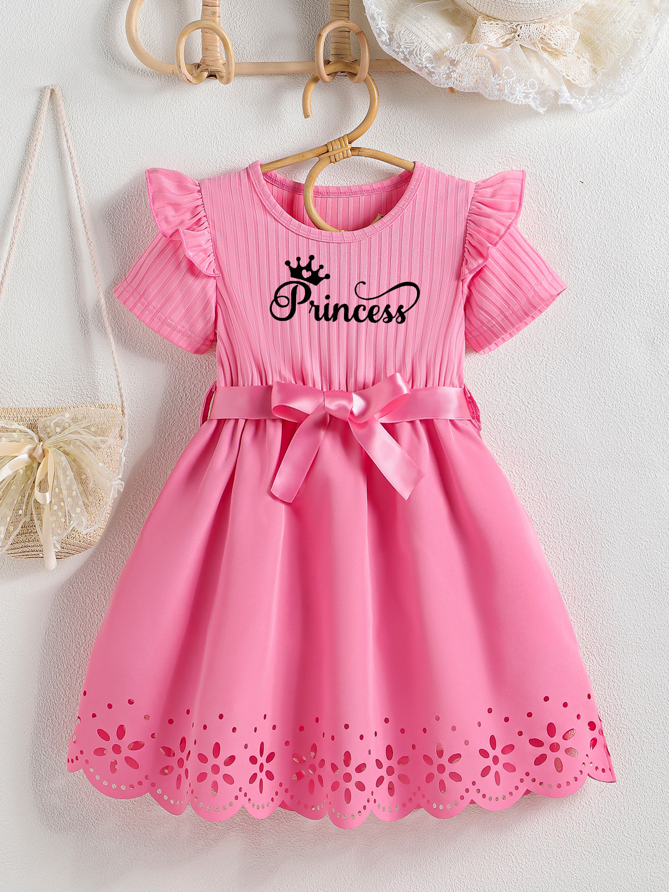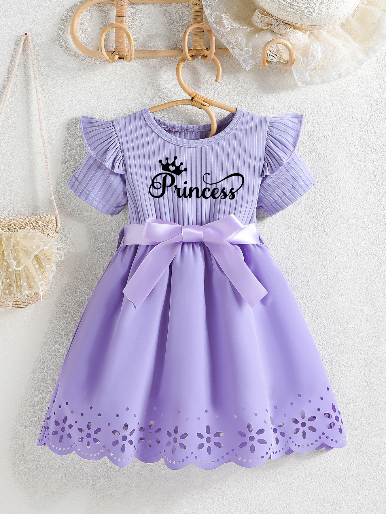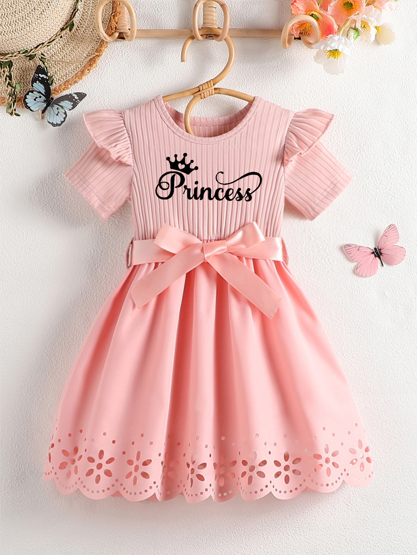 여름 새로운 소녀 공주 편지 인쇄 활 벨트 둥근 목 짧은 소매 원피스스토어 가기