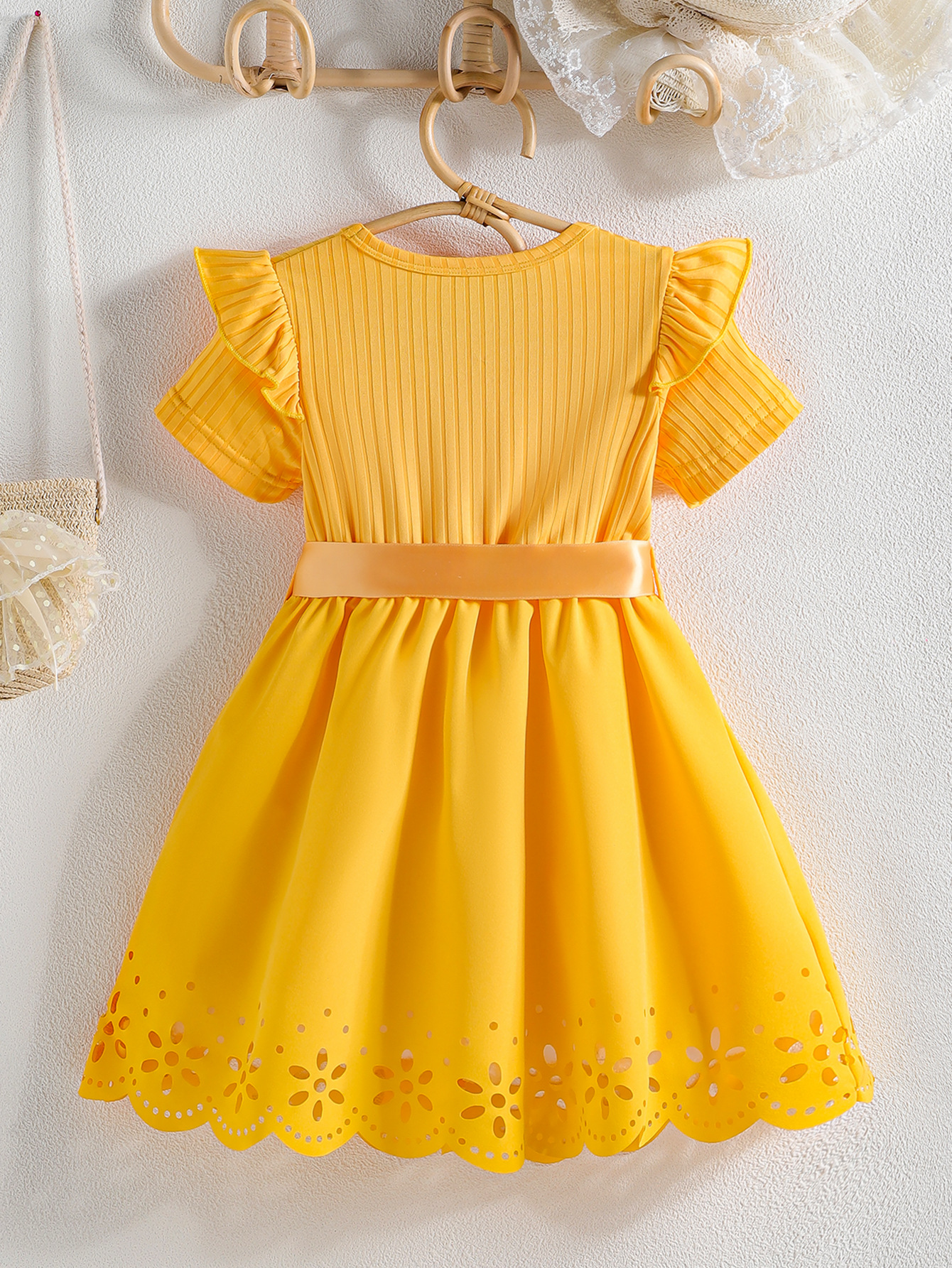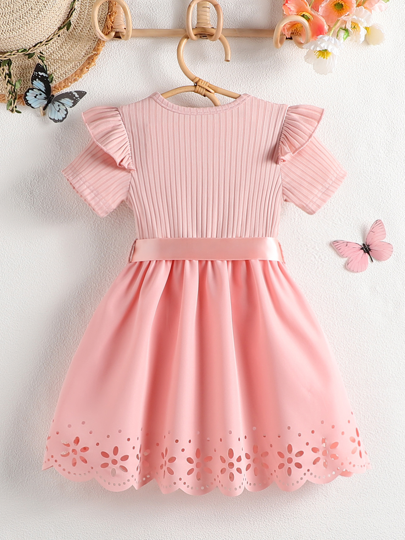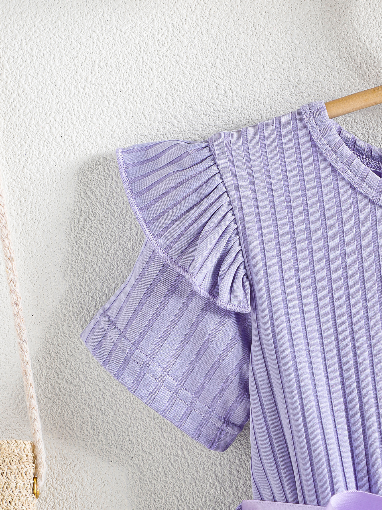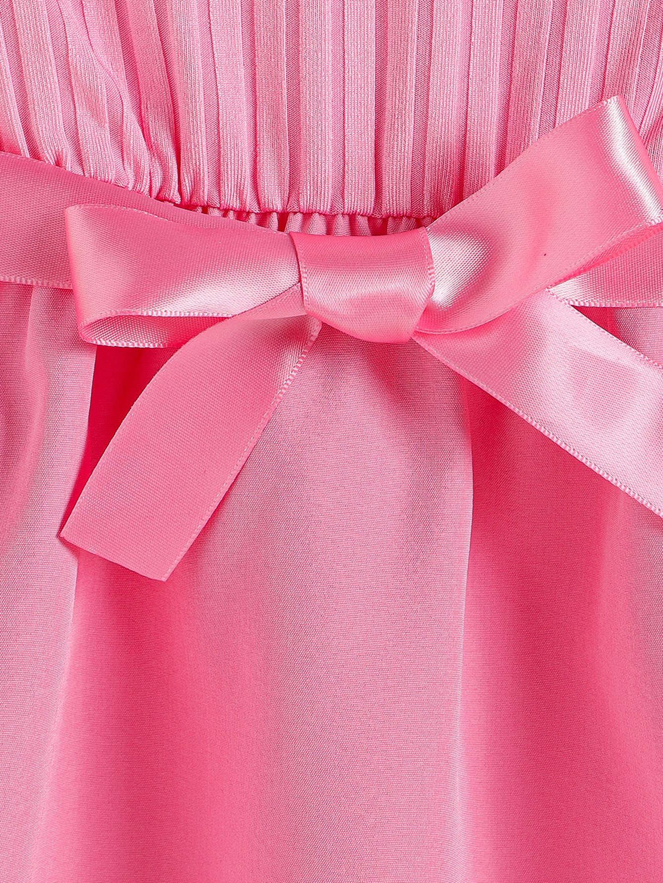 여름 새로운 소녀 공주 편지 인쇄 활 벨트 둥근 목 짧은 소매 원피스스토어 가기