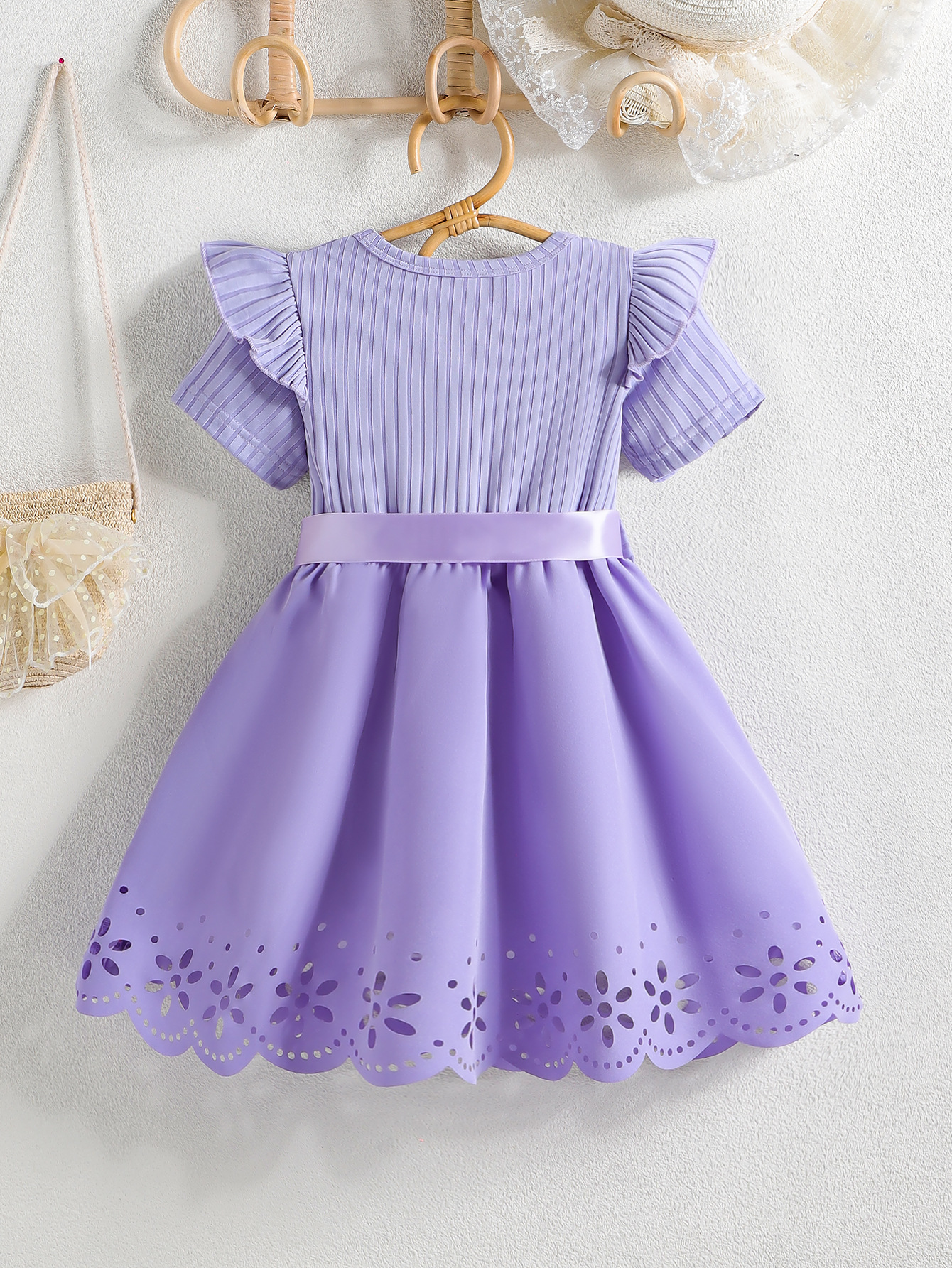 여름 새로운 소녀 공주 편지 인쇄 활 벨트 둥근 목 짧은 소매 원피스