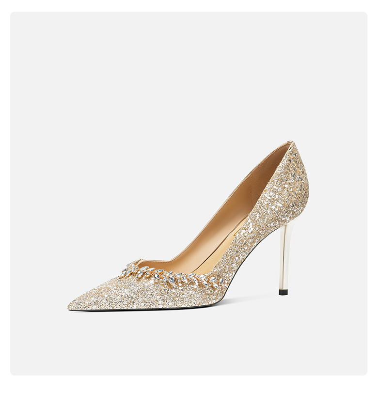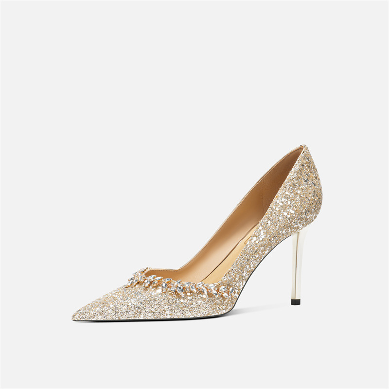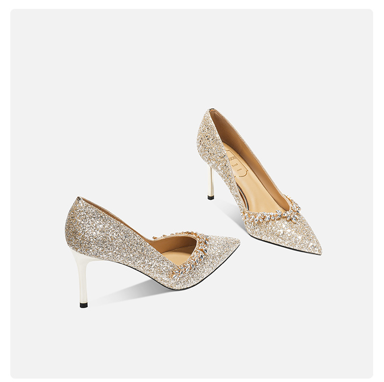 708-A26 웨딩 메인 원사 신부 웨딩 슈즈 연회 우아한 스퀸 하이힐 양가죽 뾰족한 발가락 디자인 신발스토어 가기
