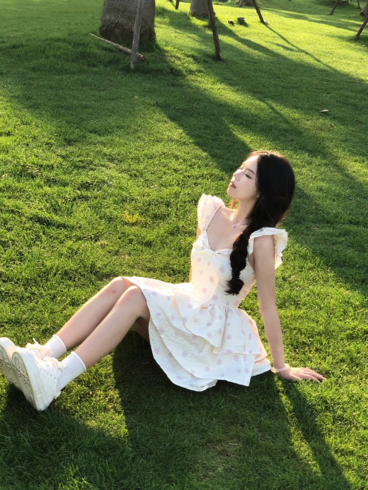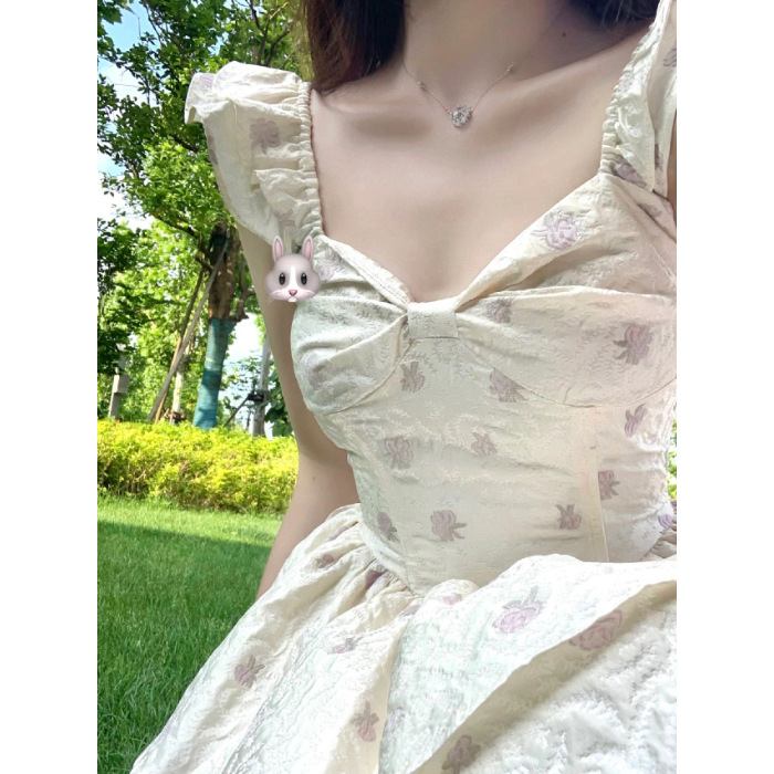 여름 2024 프랑스 스타일 아름다운 달콤한 스파이스 소녀 플라잉 슬리브 슬링 원피스 페어리 원피스 타이트를위한 타이트 허리 투투 원피스스토어 가기