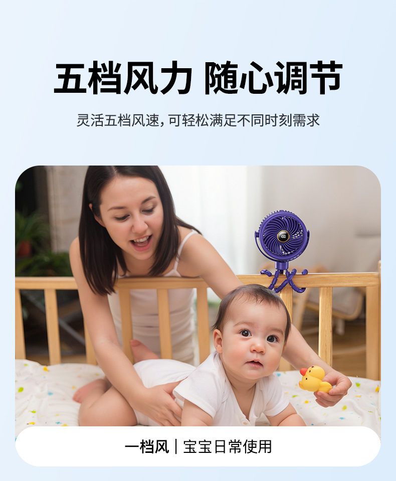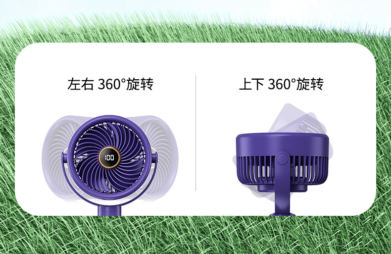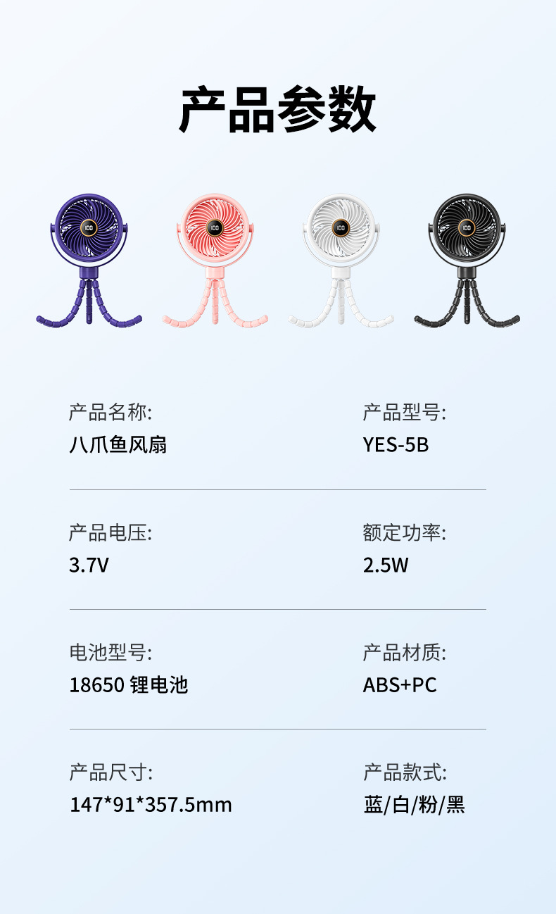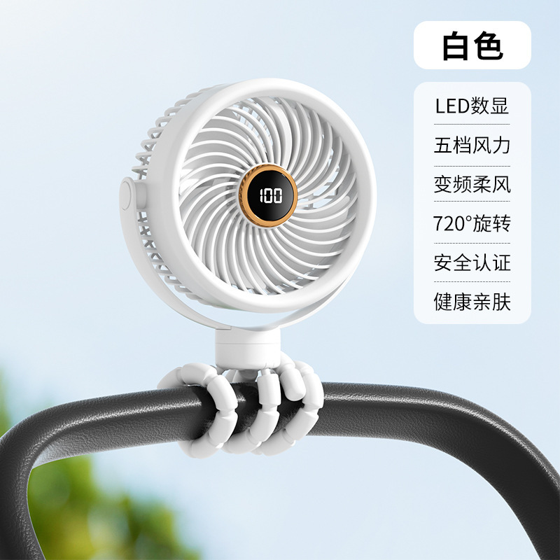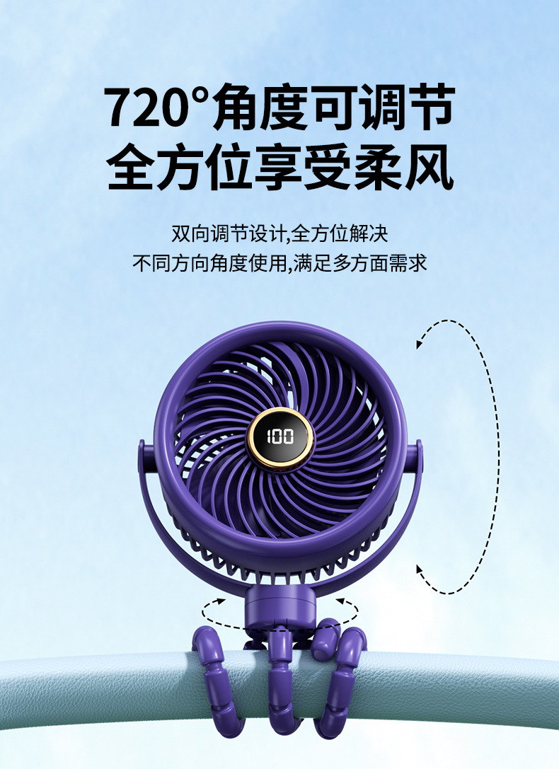 功能:五档风速可调/数显高清屏幕随时查看电量及风力大小/姿态百变摆法多样,可手持、可立、可挂、可缠绕。