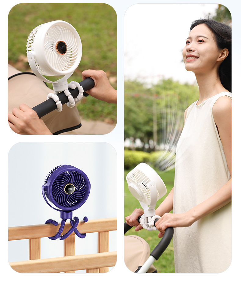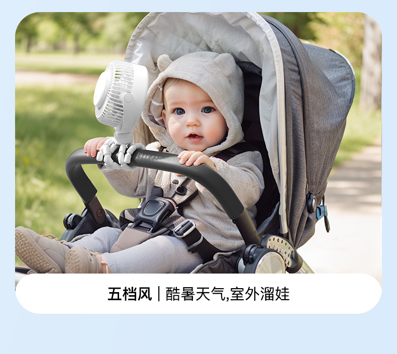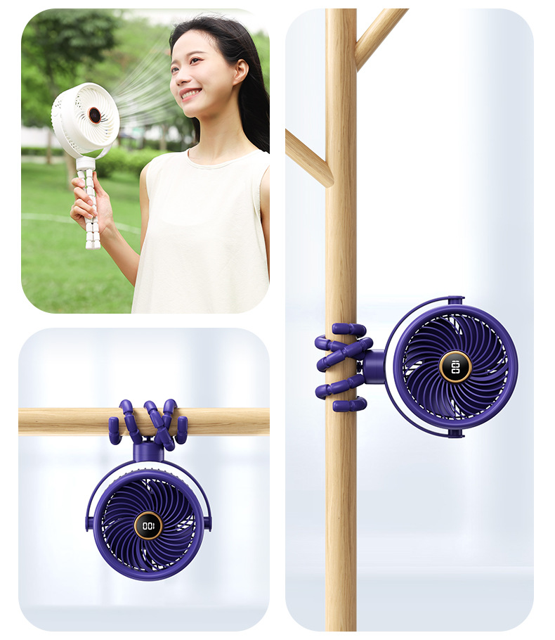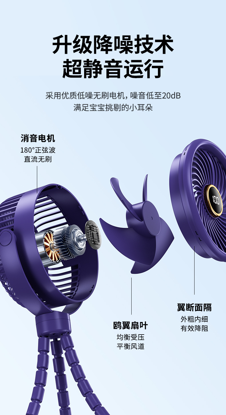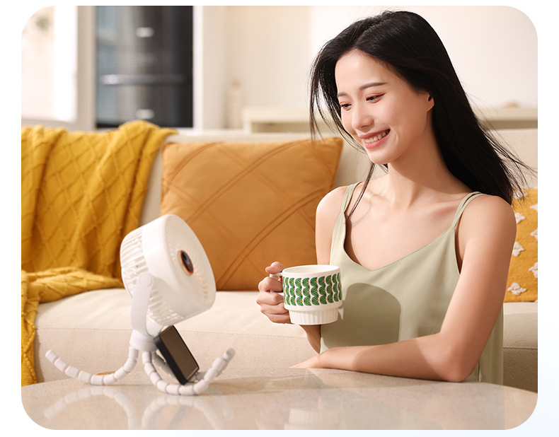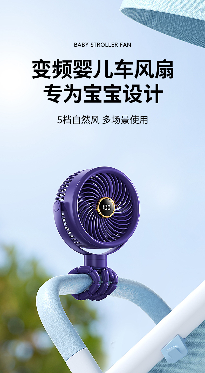 功能:五档风速可调/数显高清屏幕随时查看电量及风力大小/姿态百变摆法多样,可手持、可立、可挂、可缠绕。