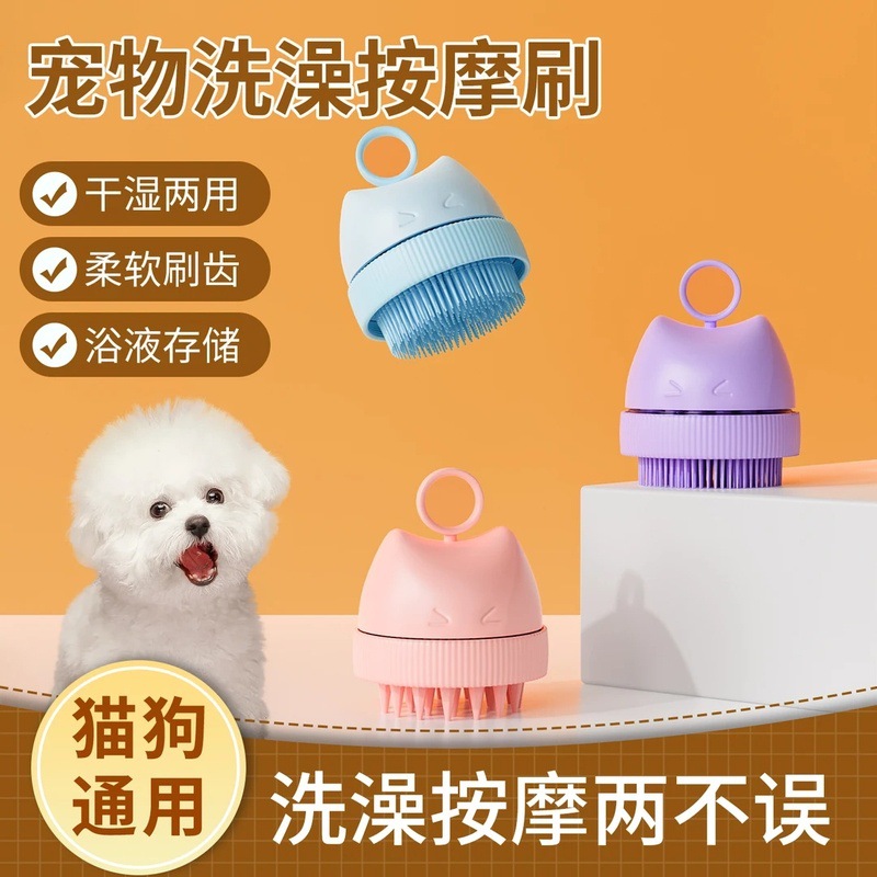 목욕 브러쉬 긴 손잡이 프레스 액체 목욕 뒤 문지르는 다기능 목욕 브러쉬 청소 마사지 샴푸 애완 동물 고양이 개 브러쉬스토어 가기