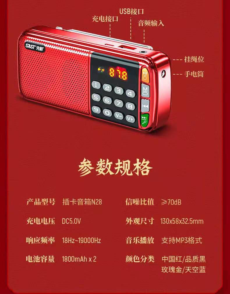 N28 라디오 노인 노인 휴대용 플레이어 충전 라디오 워커 카드 작은 스피커