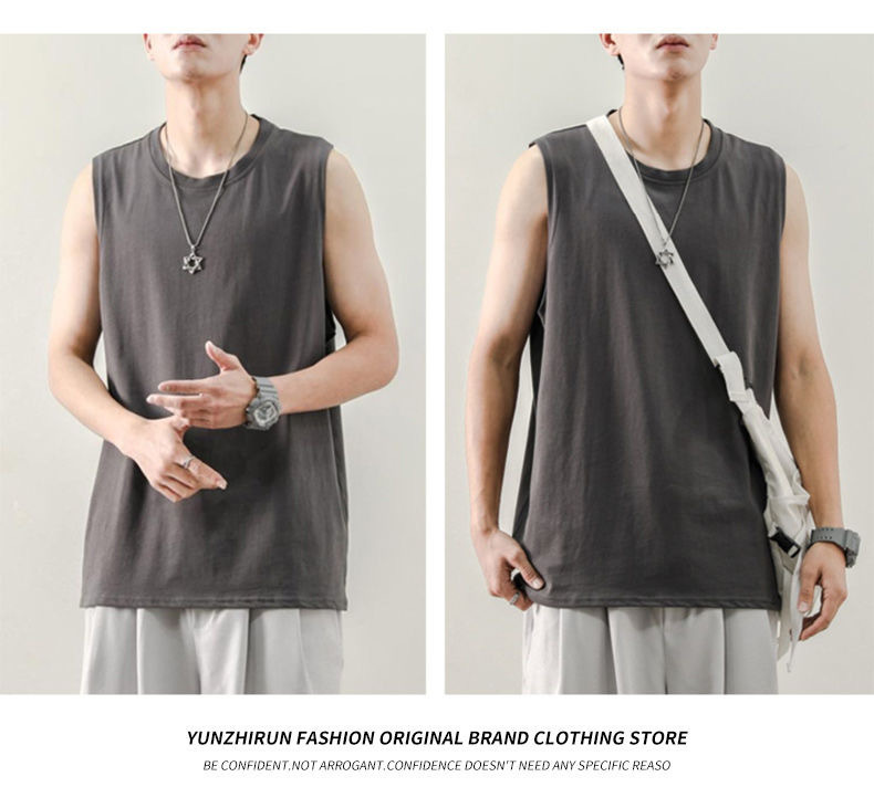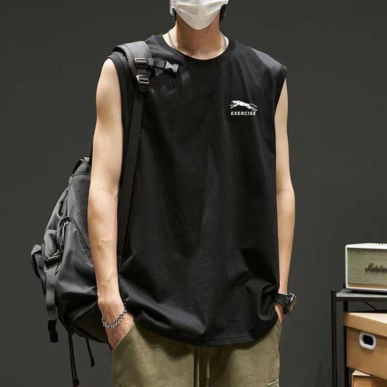 큰 어깨 조끼 2024 여름 새로운 남자 스포츠 느슨한 훈련 민소매 티셔츠 빠른 건조 허리 반팔 탑 라운드스토어 가기