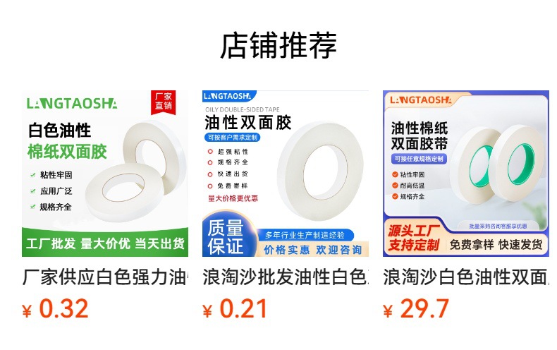 공장 도매 고점도 유성 양면 테이프 흰색 손 찢기 강한 양면 테이프 학생 사무실 용품 테이프스토어 가기