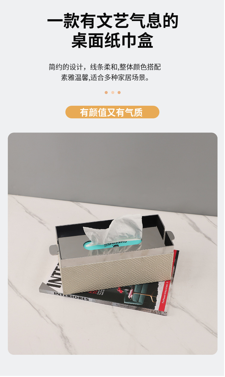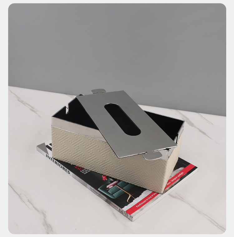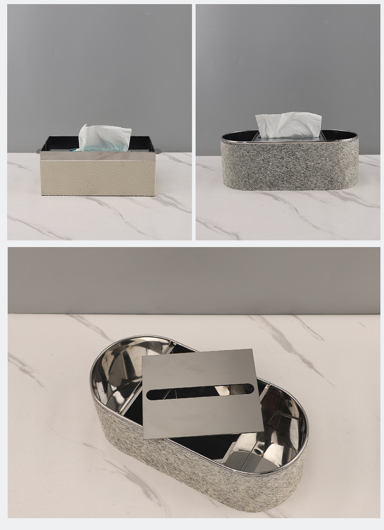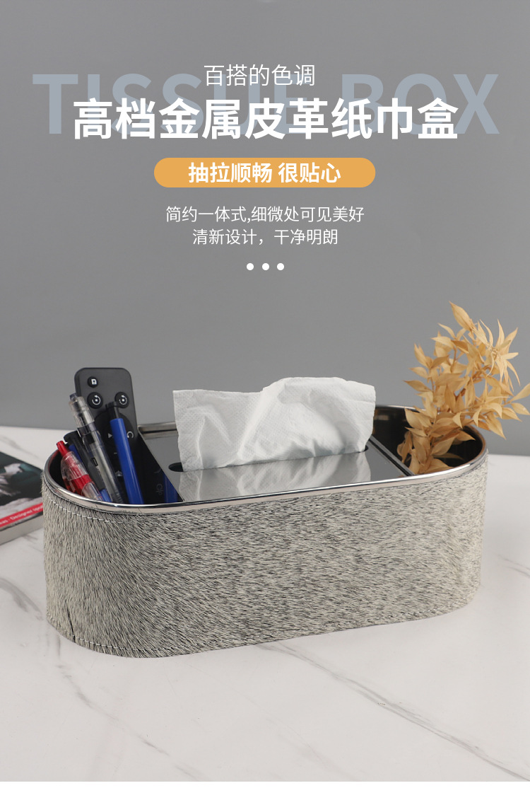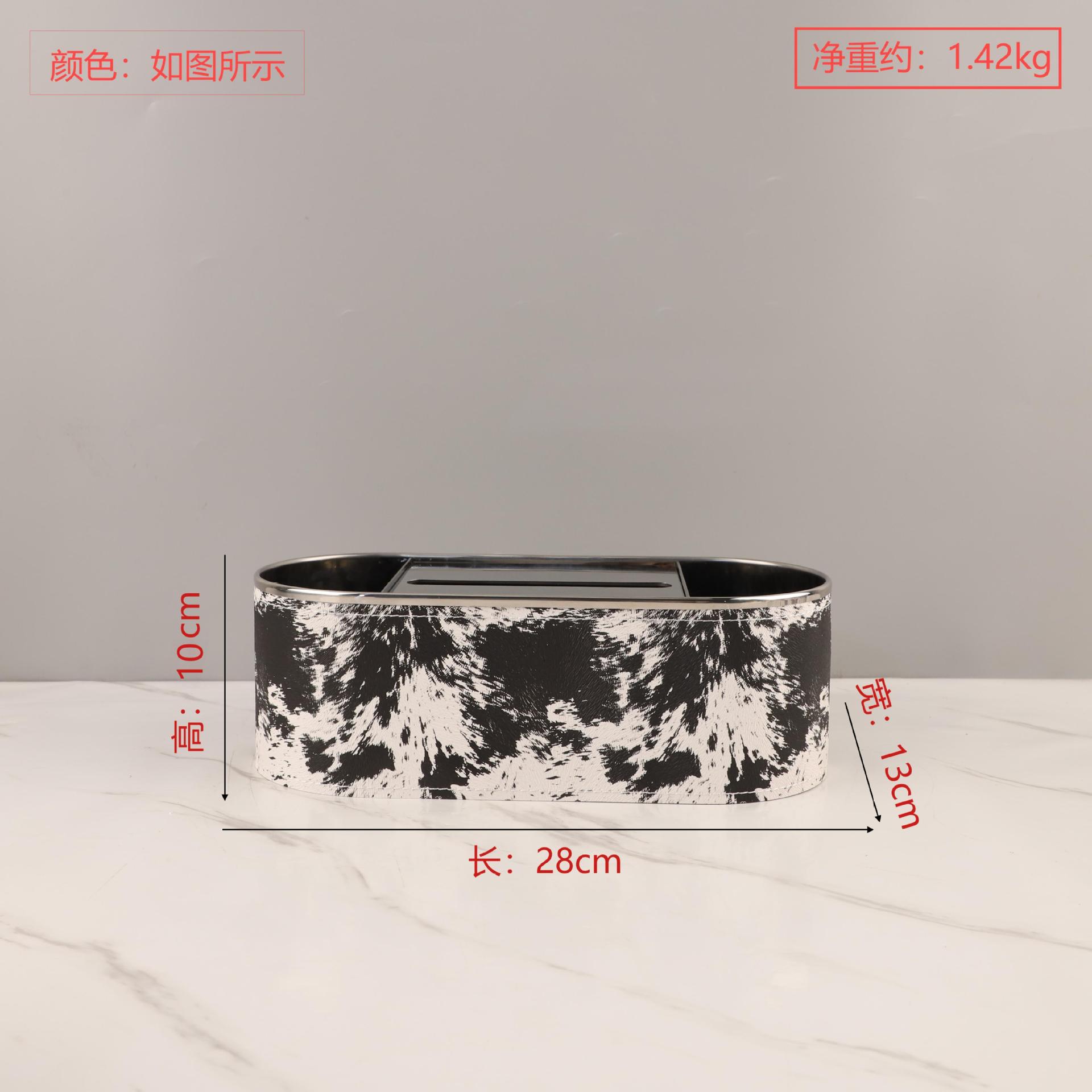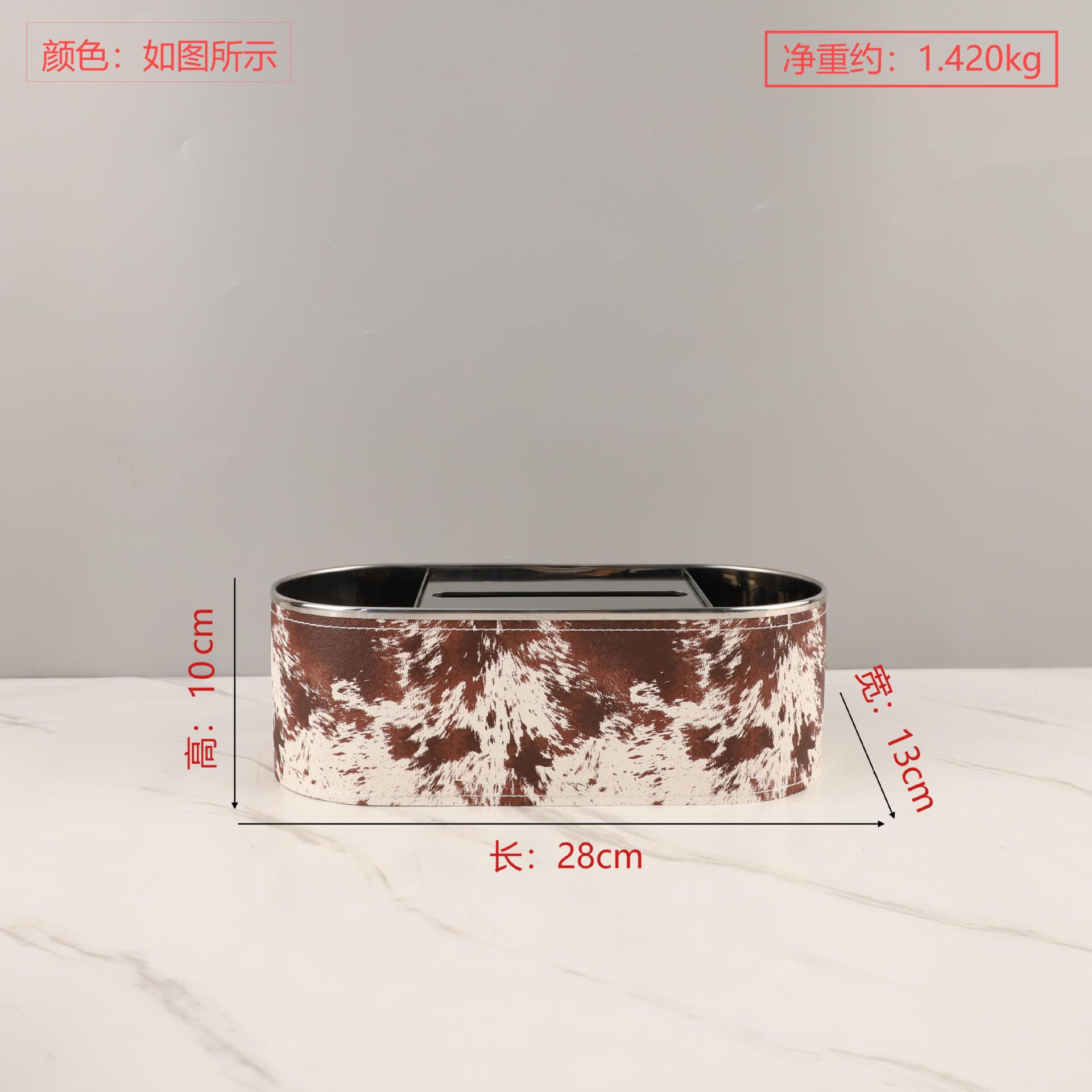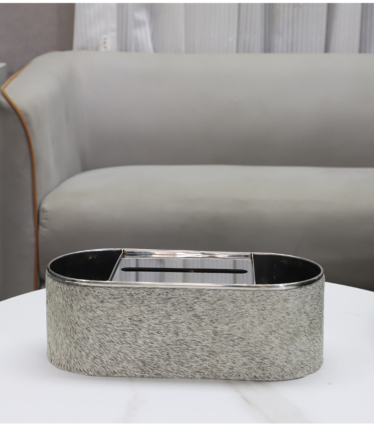 유럽 스타일 엔트리 고급 금속 말 헤어 가죽 종이 타월 종이 상자 장식품 홈 거실 데스크탑 모델 룸 호텔 침실