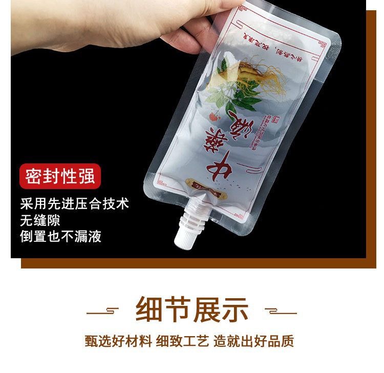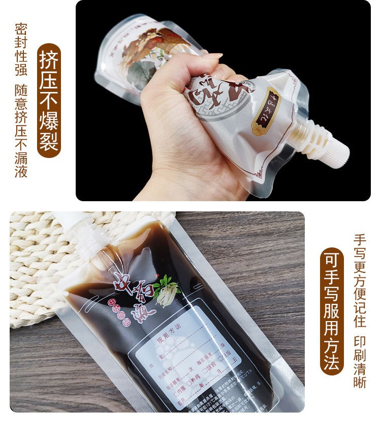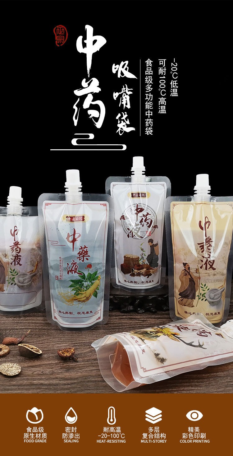 액체 한약 가방 식품 등급 자립형 액체 재포장 주둥이 가방 일회용 휴대용 플라스틱 밀봉 한약 액체 가방