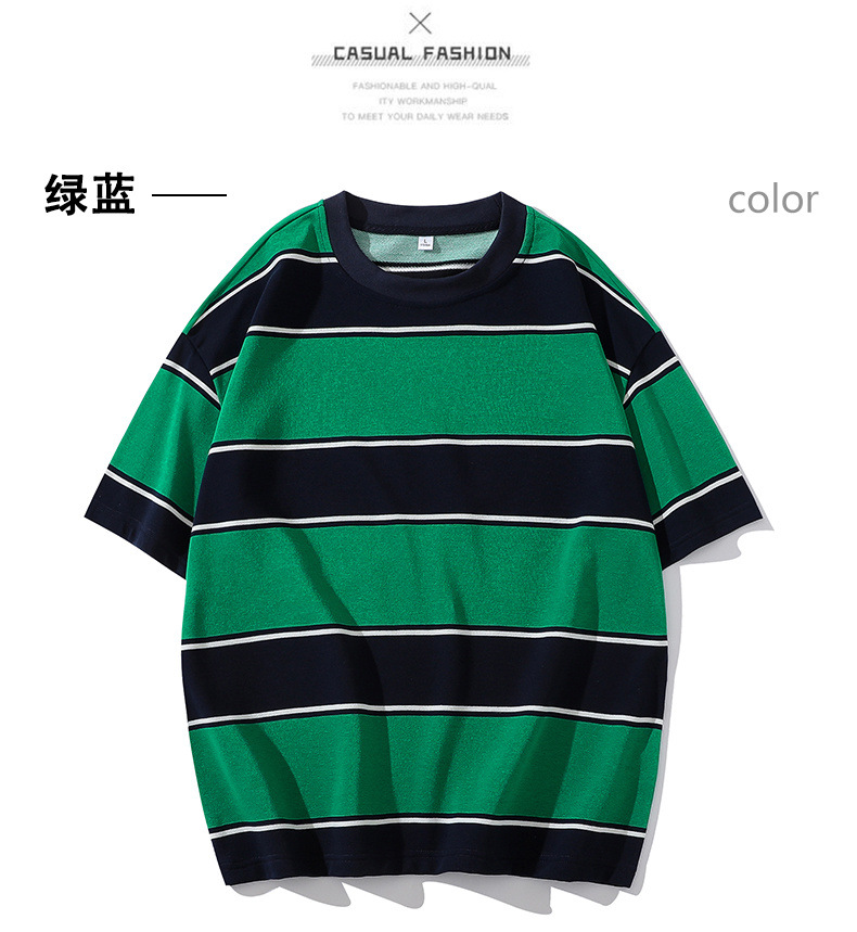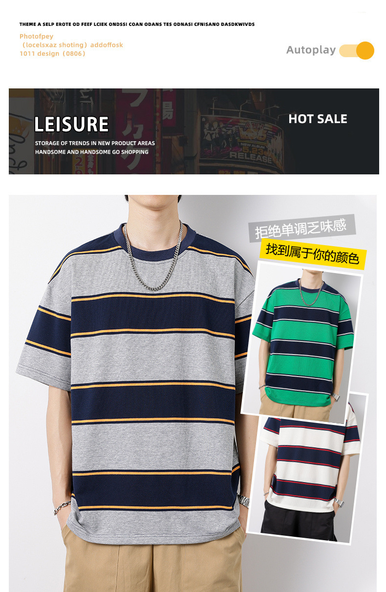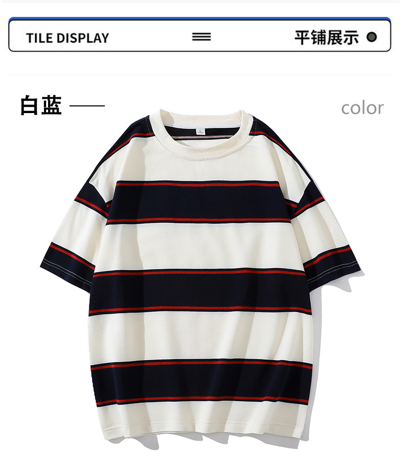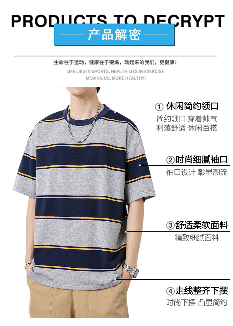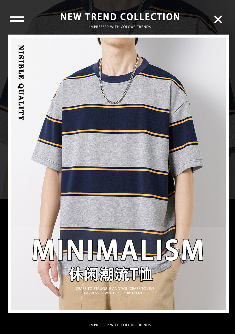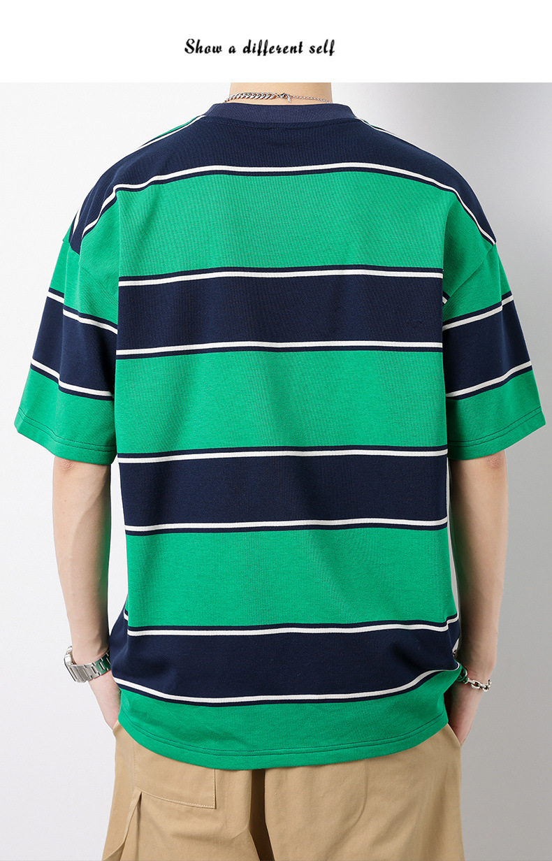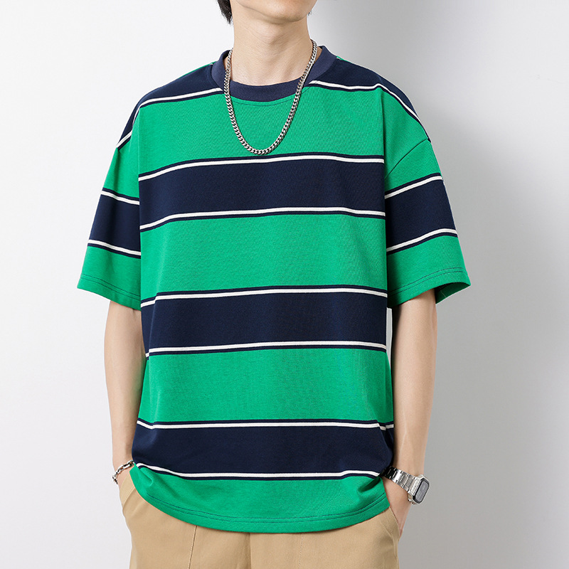 남자 티셔츠 일본식 새 줄무늬 옷 여름 헤비 라운드 넥 남자 느슨한 올 매치 캐주얼 쇼트 슬리브 남자스토어 가기