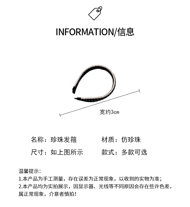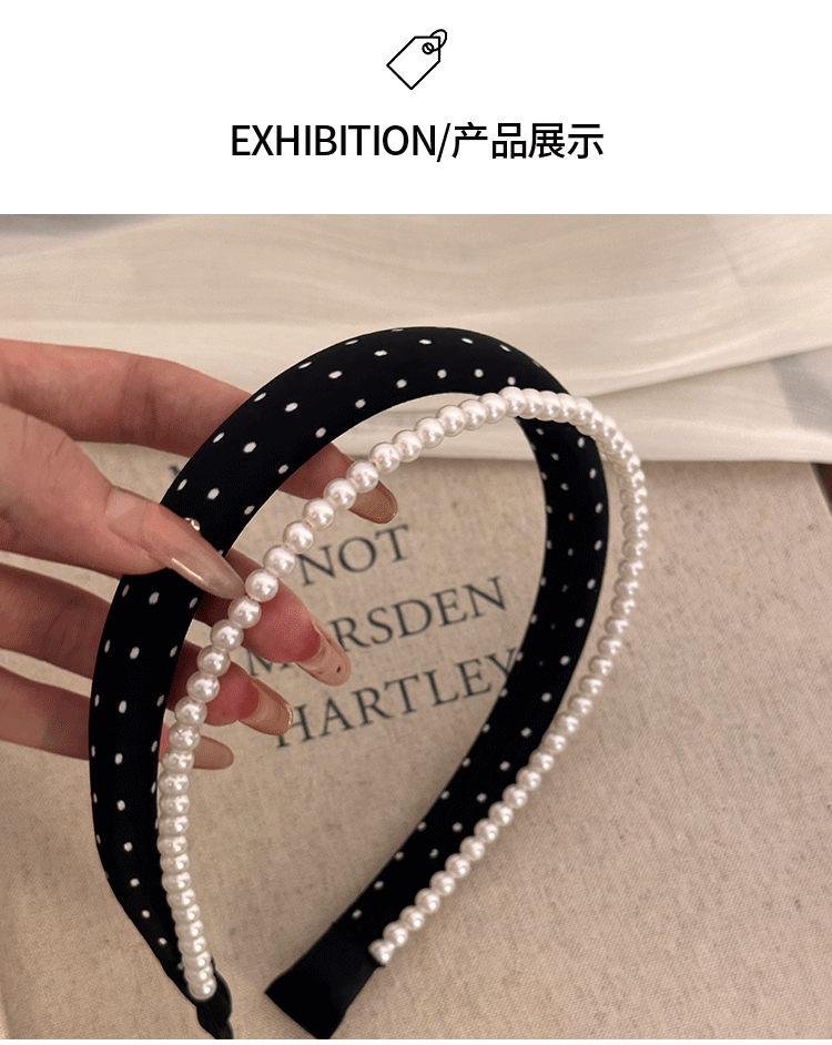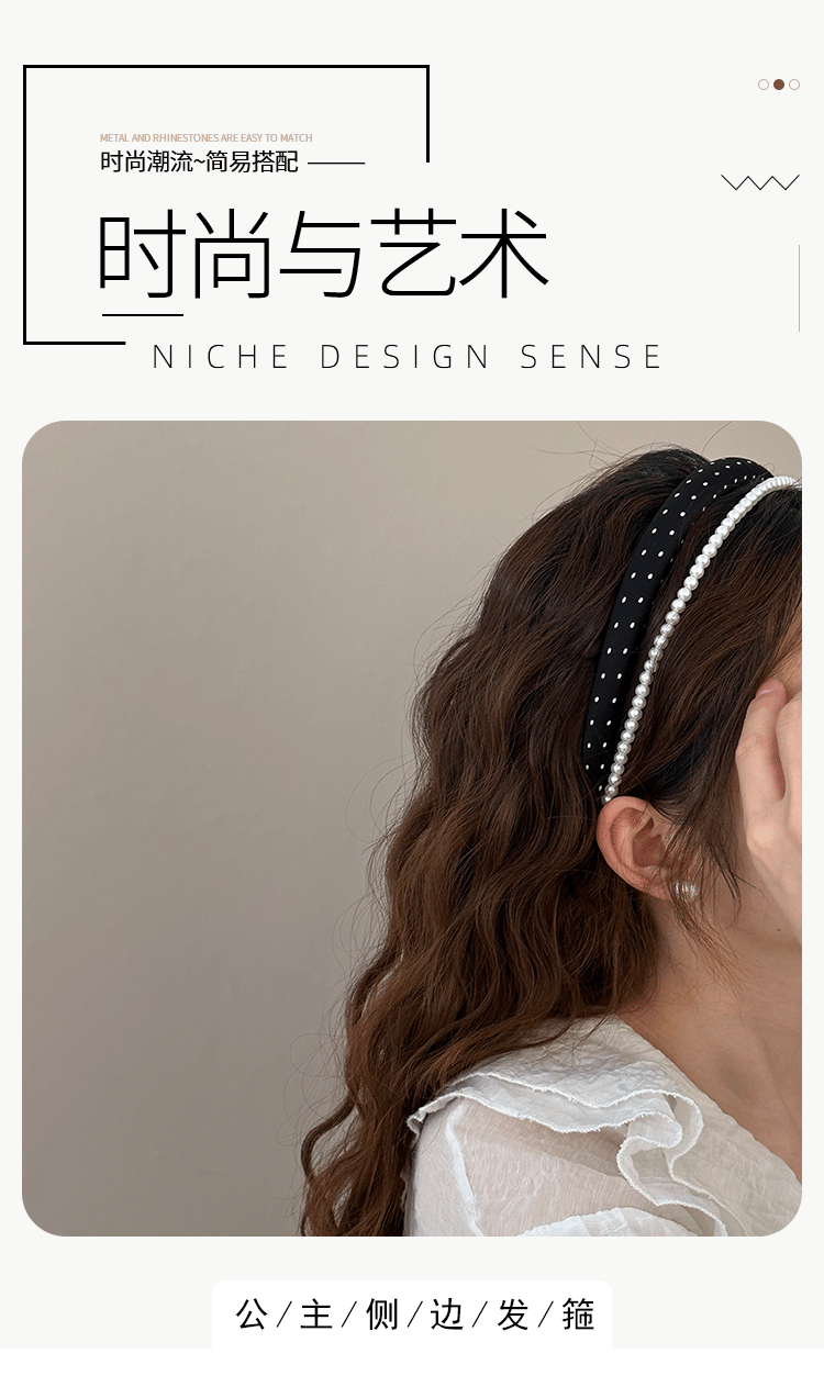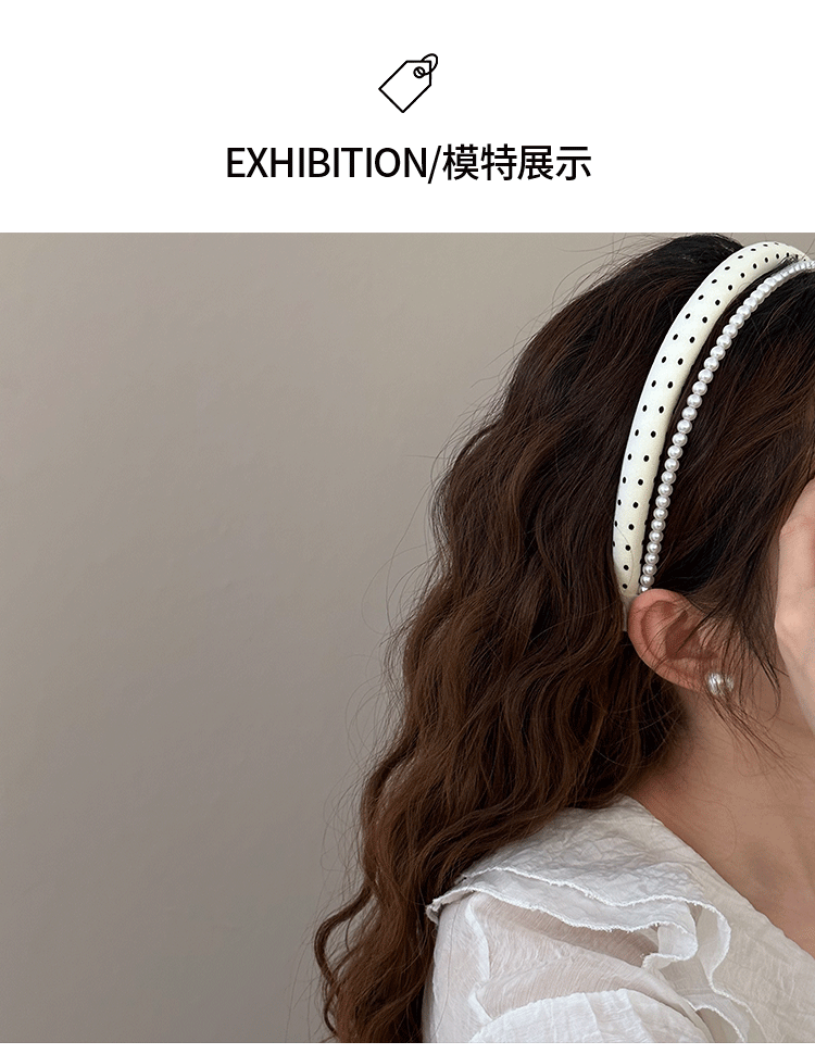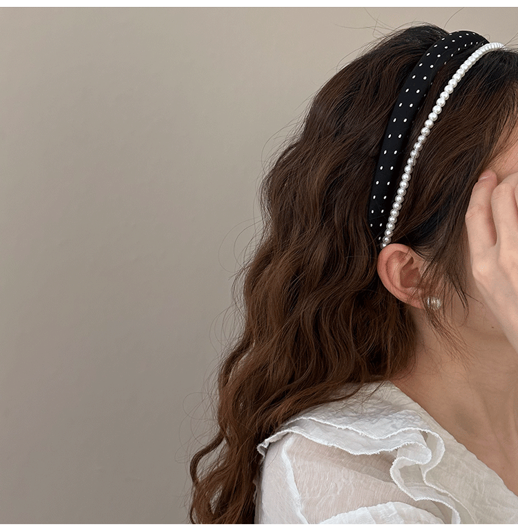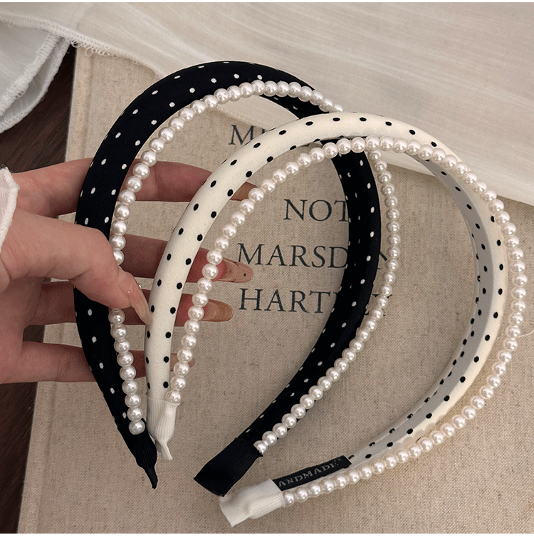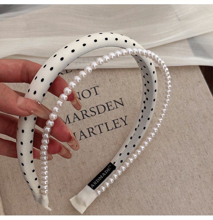인터넷 인기있는 새로운 여성 웨이브 도트 흑백 진주 원단 스폰지 헤어 후프 여성의 높은 두개골 얼굴 작은 머리 후프 스타일