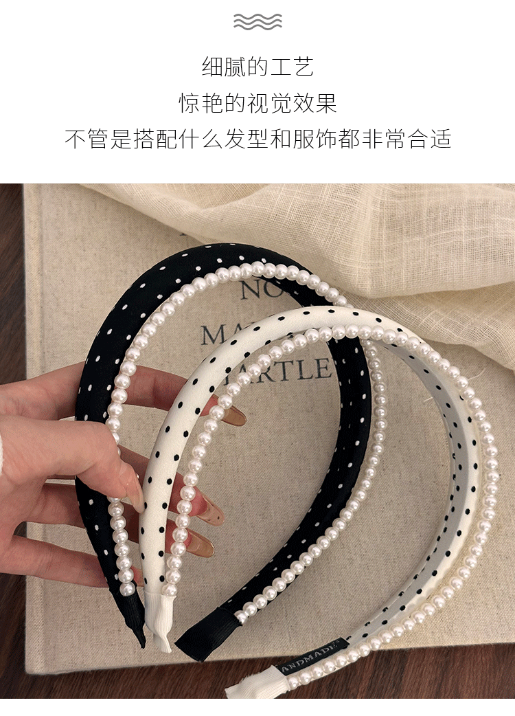 인터넷 인기있는 새로운 여성 웨이브 도트 흑백 진주 원단 스폰지 헤어 후프 여성의 높은 두개골 얼굴 작은 머리 후프 스타일스토어 가기