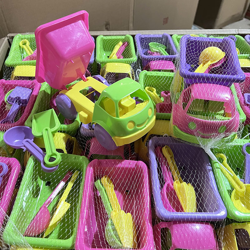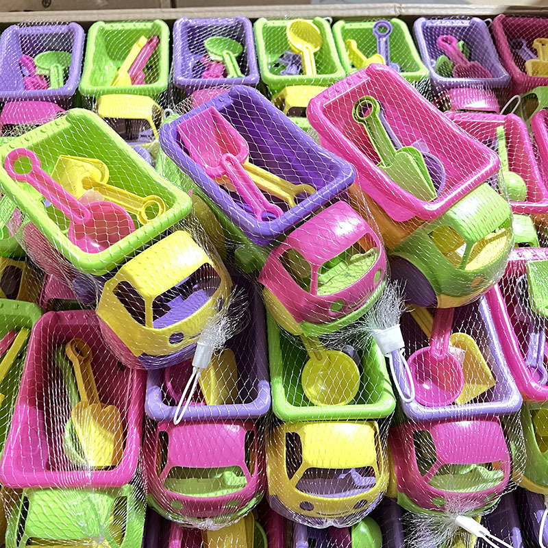 어린이 장난감 다채로운 해변 버기 삽 해변 세트 장난감 모래 수영장 모래 파는 트롤리 마구간 링 도매
