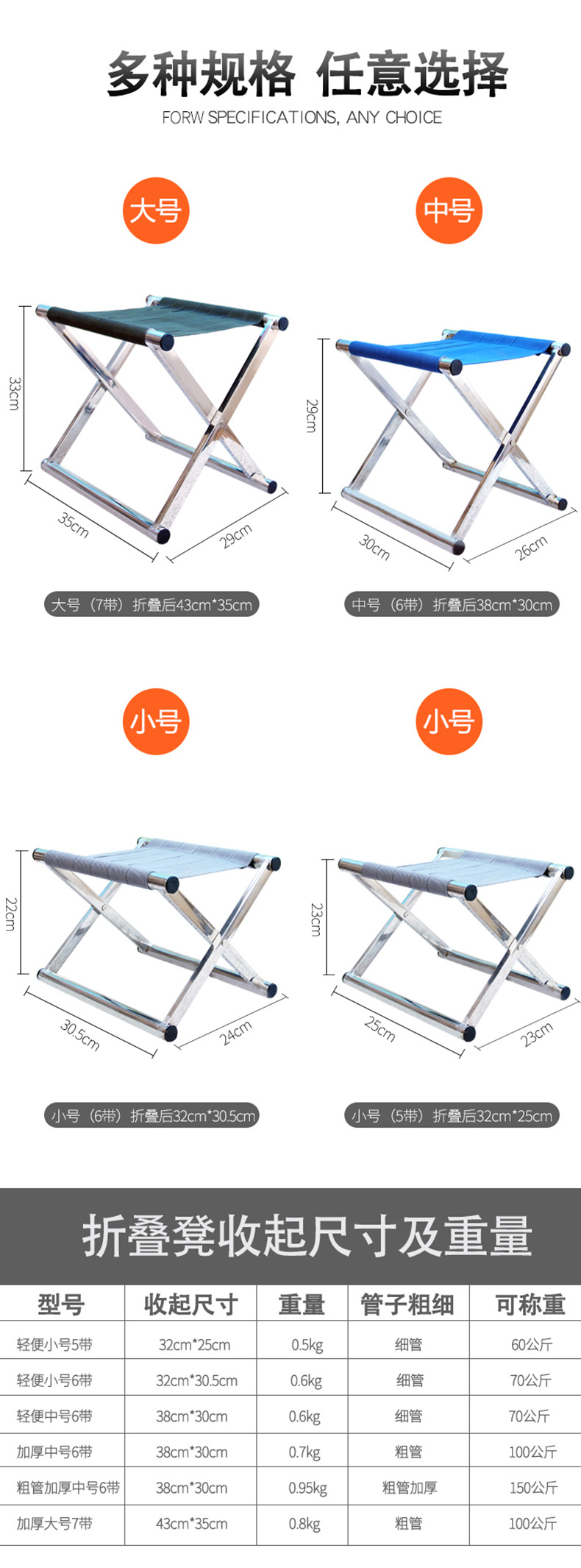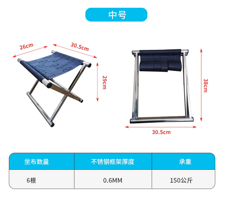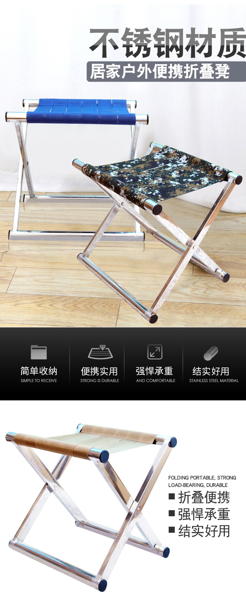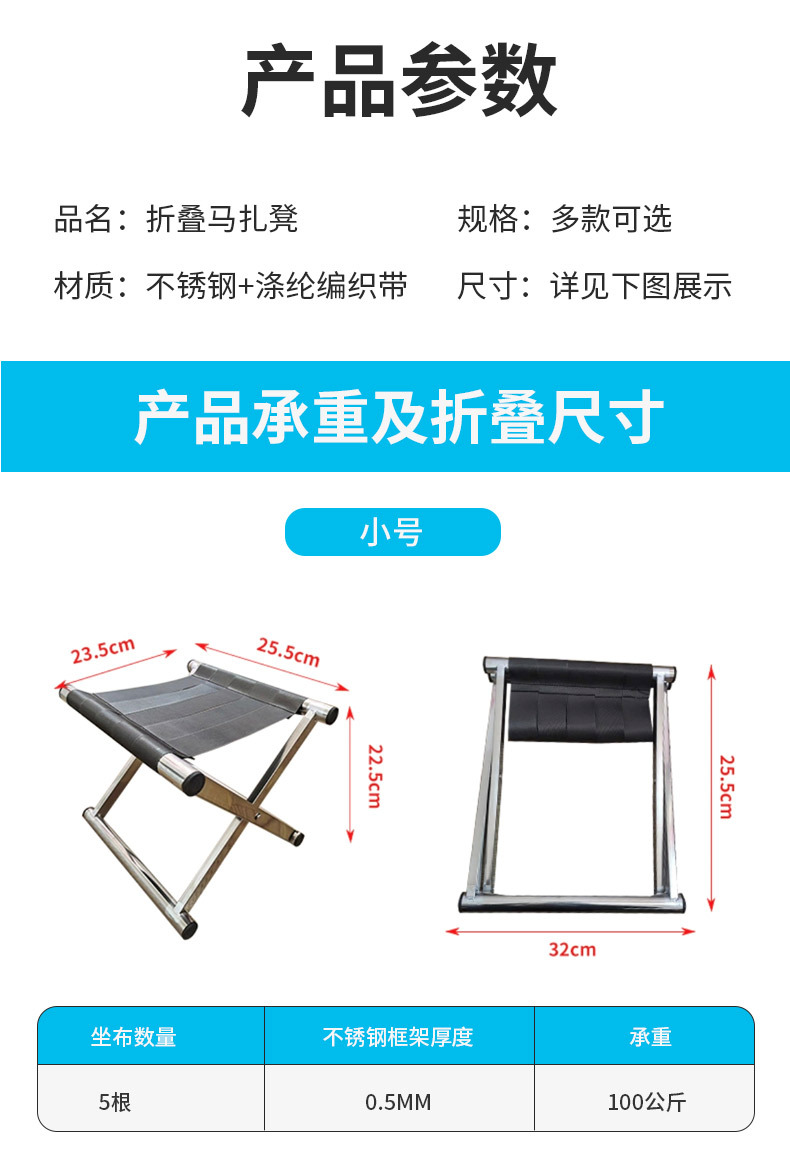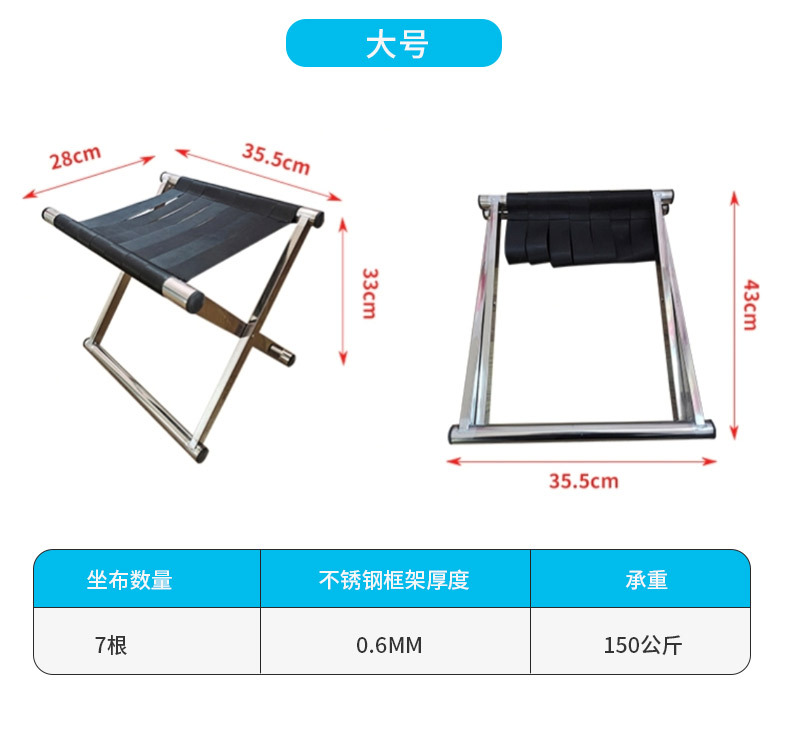 야외 바베큐 판매대용 스테인리스 접이식 의자, 학생 훈련, 캠핑, 낚시용 의자, 두꺼운 접이식 스툴