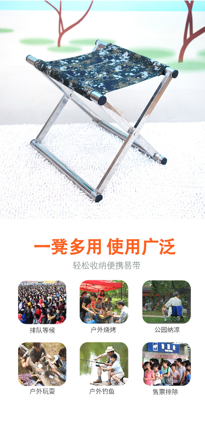 야외 바베큐 판매대용 스테인리스 접이식 의자, 학생 훈련, 캠핑, 낚시용 의자, 두꺼운 접이식 스툴스토어 가기
