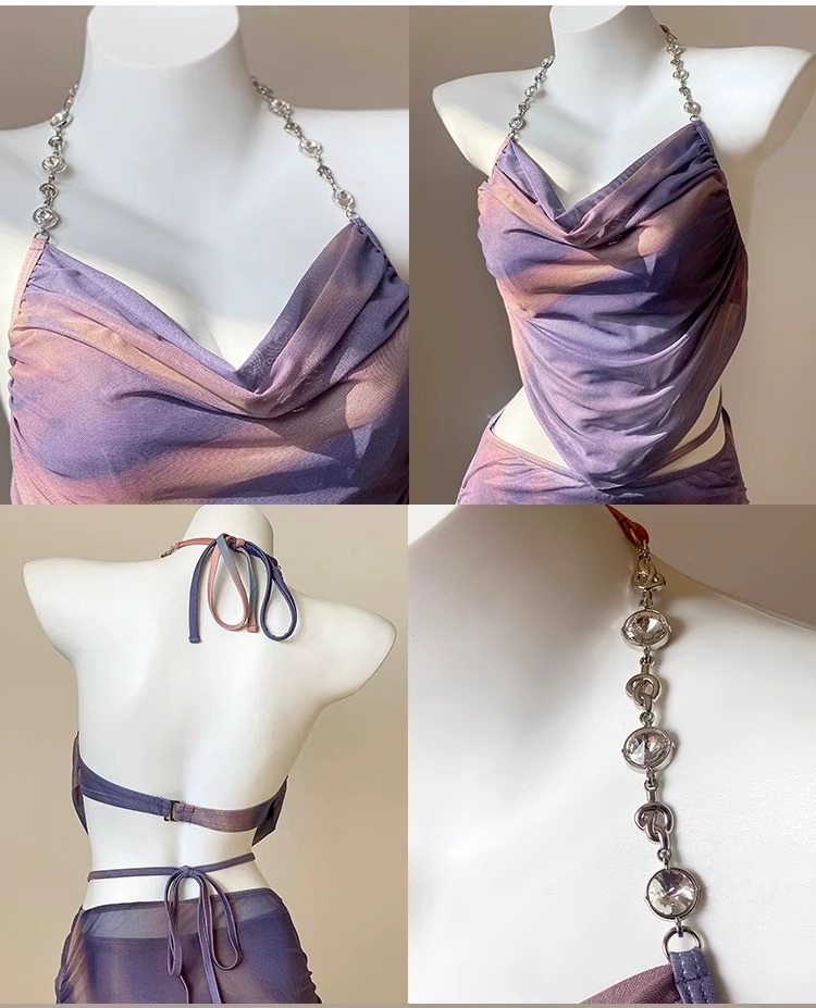 뜨거운 소녀 비키니 수영복 여성용 3 피스 세트 해변 휴일 긴 원피스 작은 가슴 수집 섹시한 온천 수영복 스틸 브래킷
