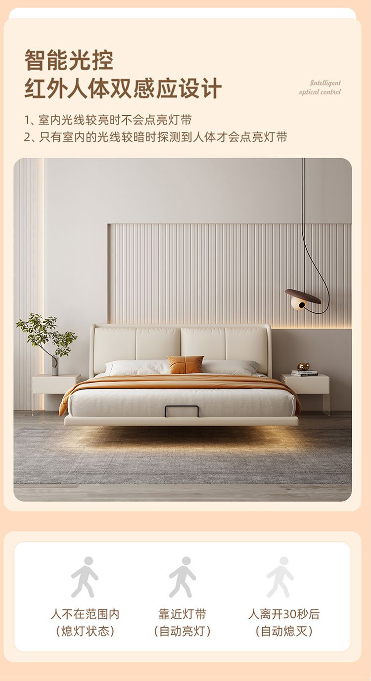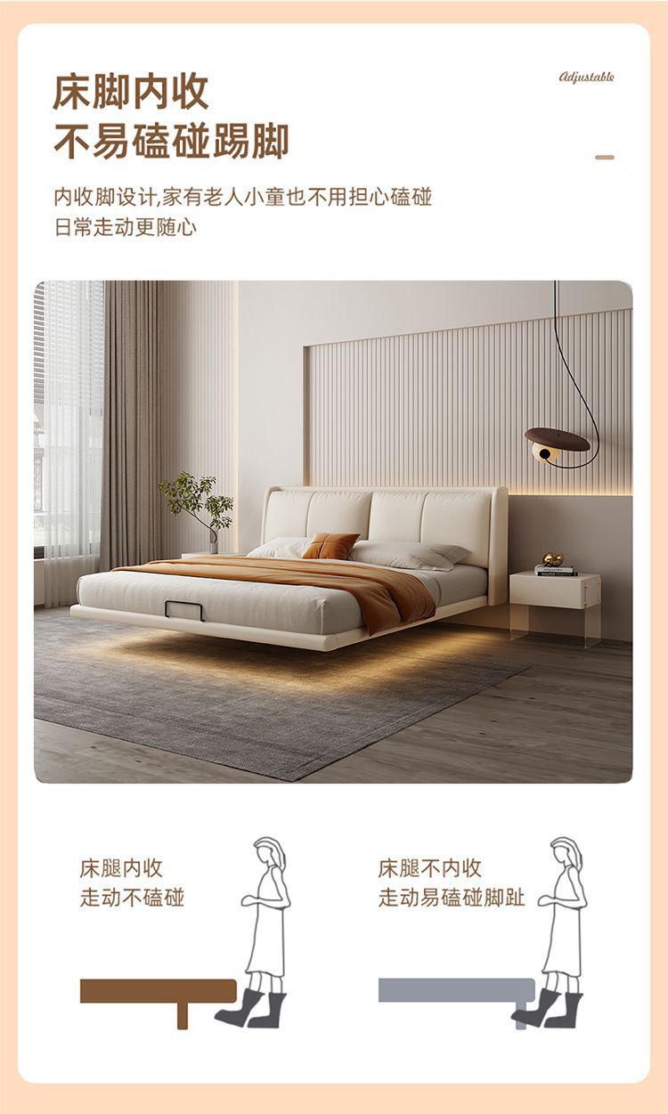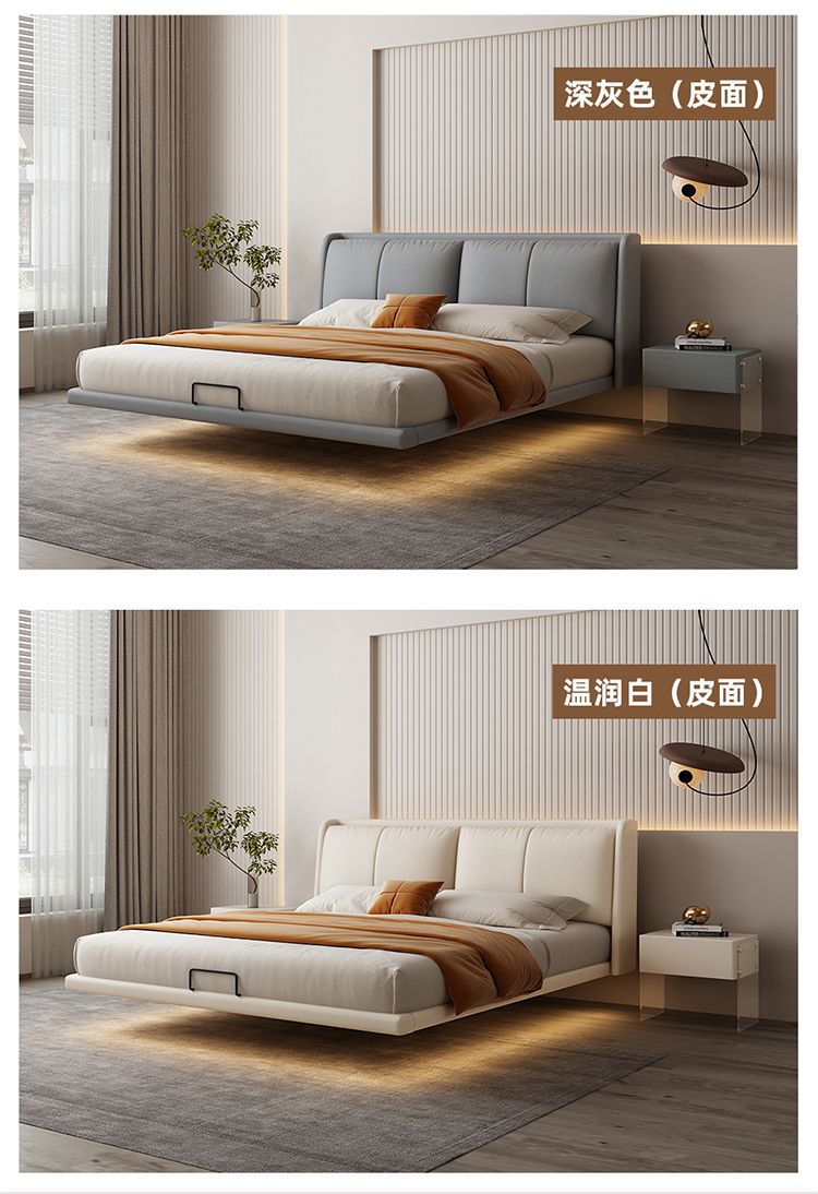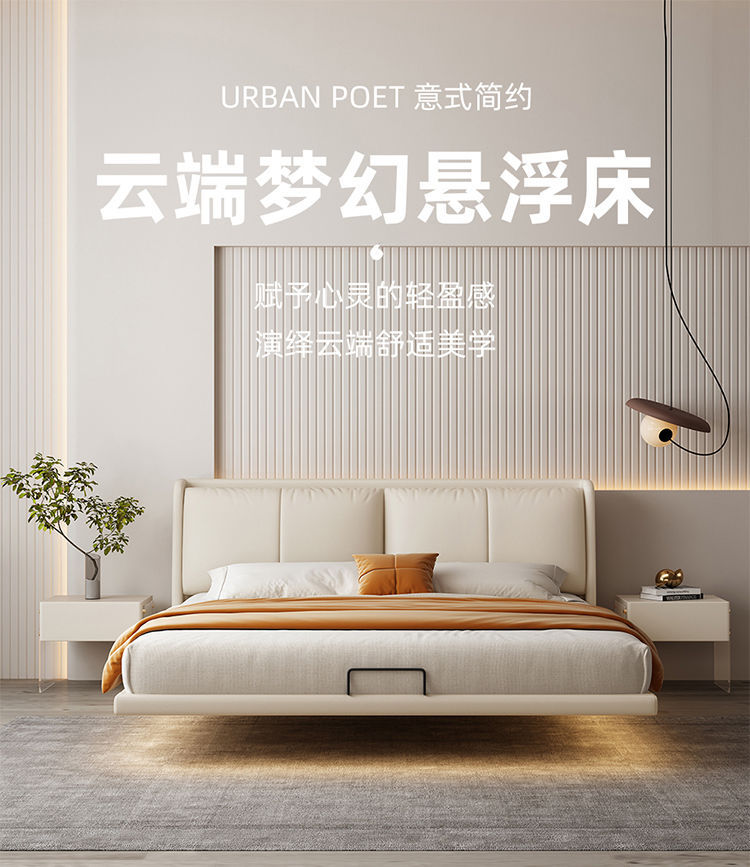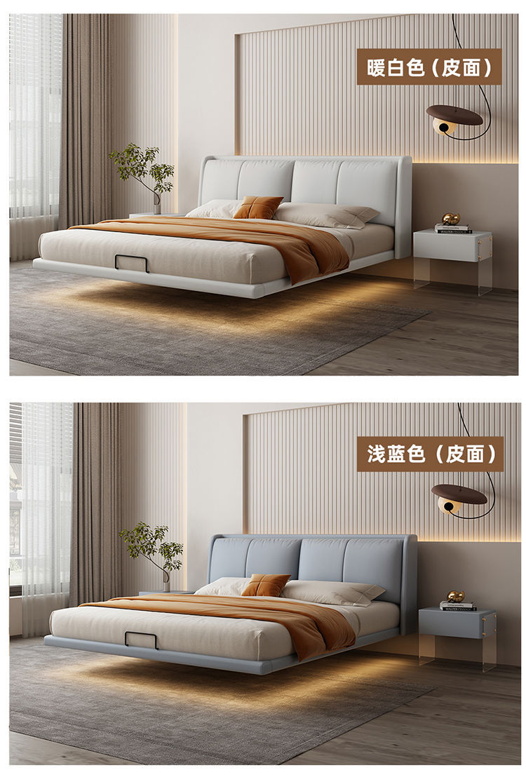 이탈리아 미니멀리스트 가죽 침대 현대 미니멀리스트 마스터 침실 더블 킹 콩 가죽 서스펜션 침대 인터넷 연예인 소프트 백 웨딩 침대스토어 가기