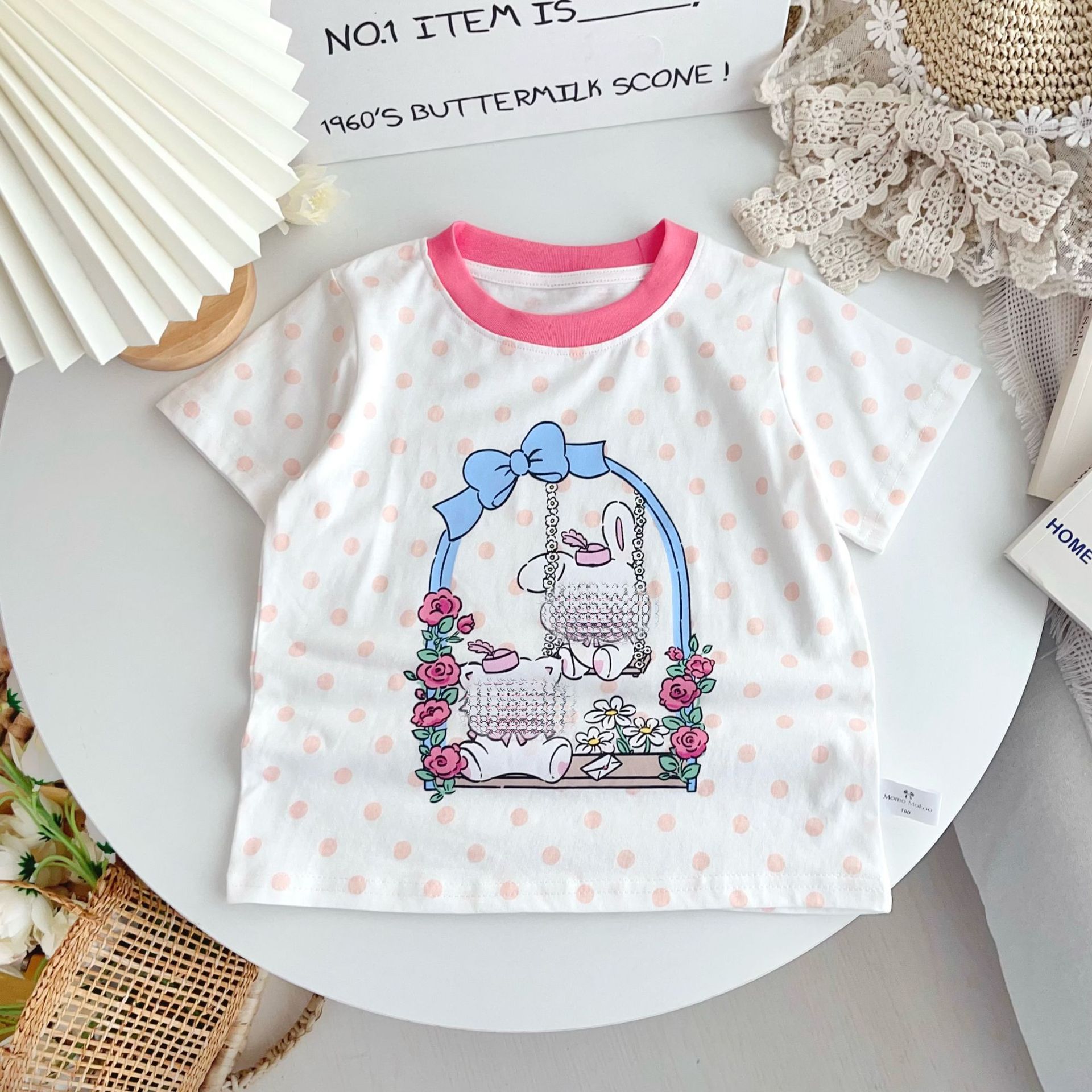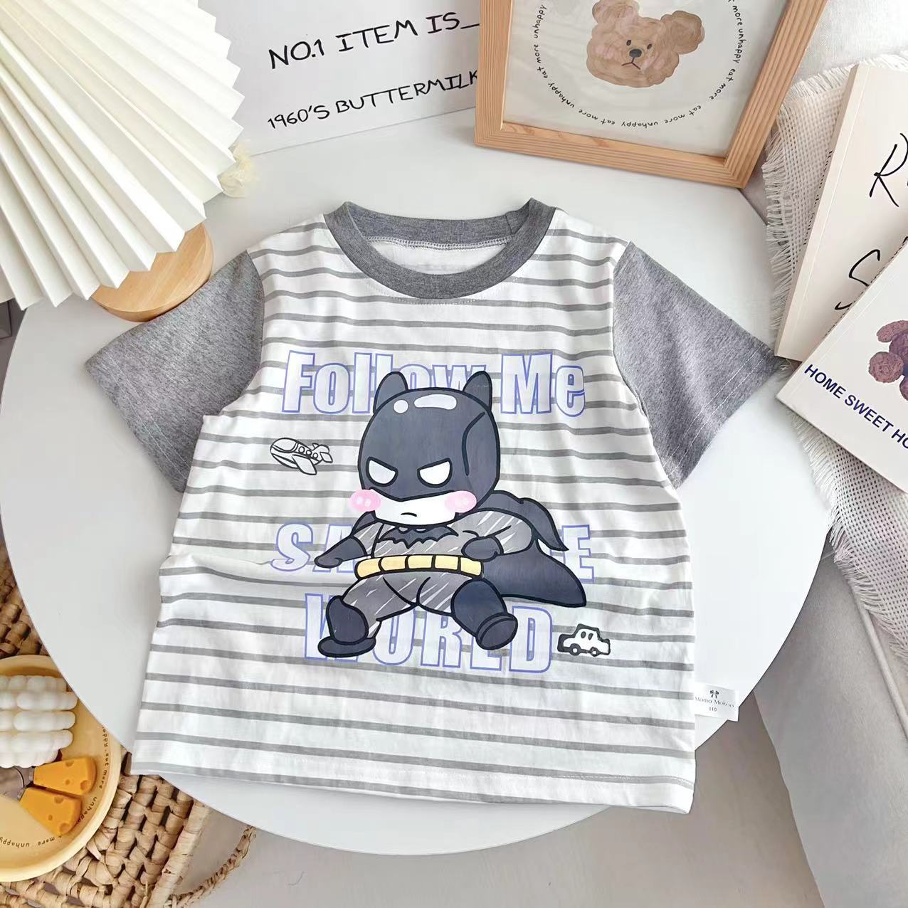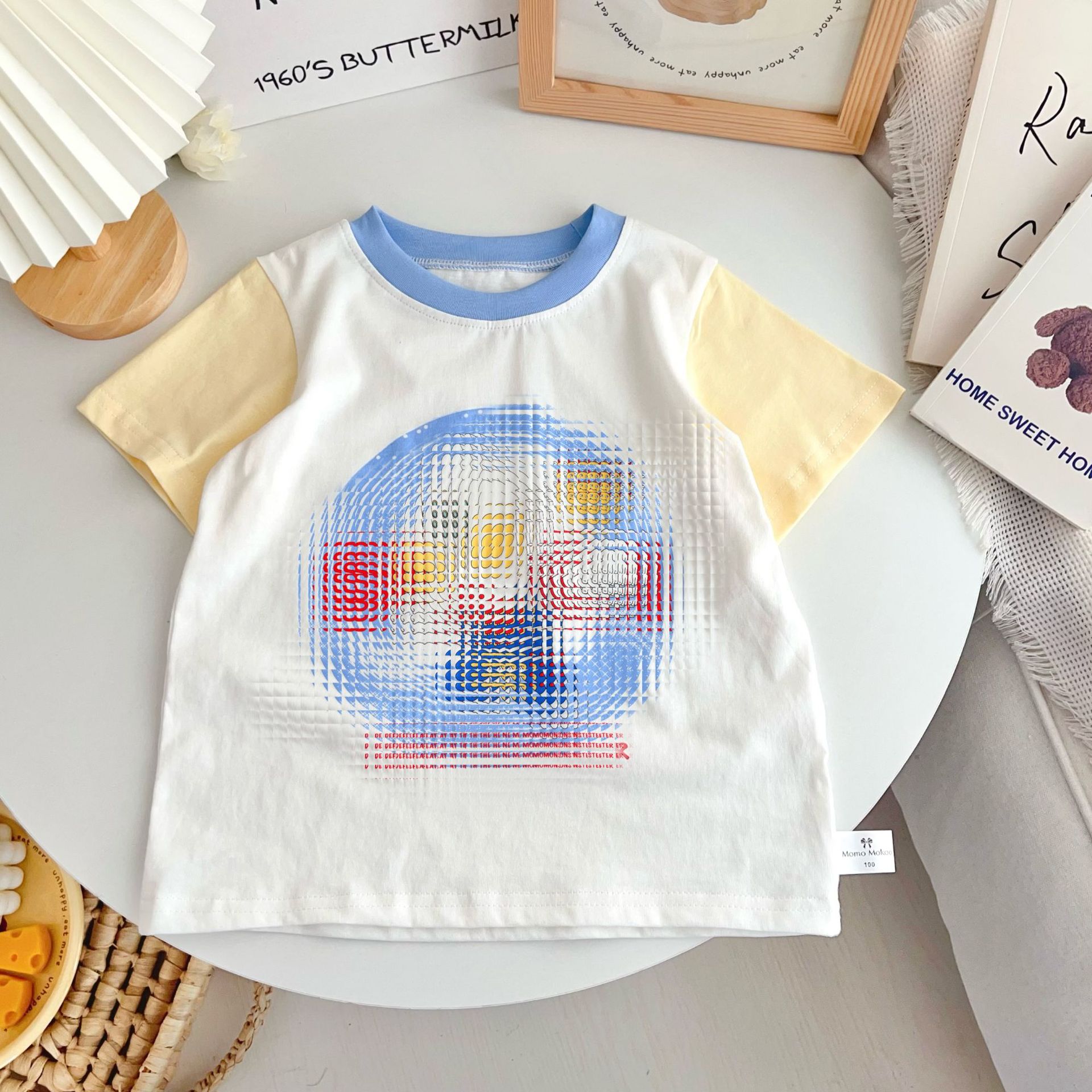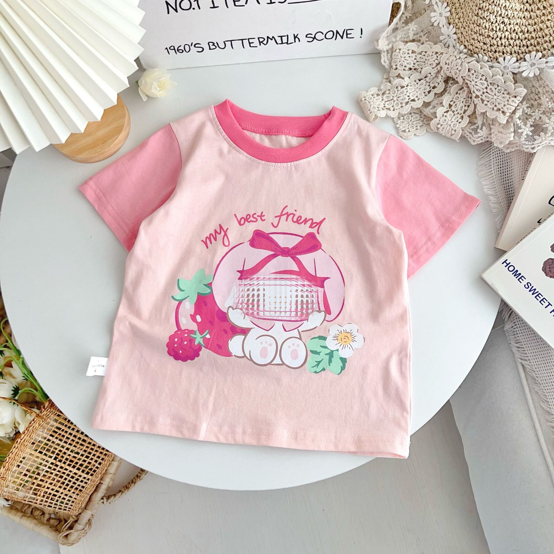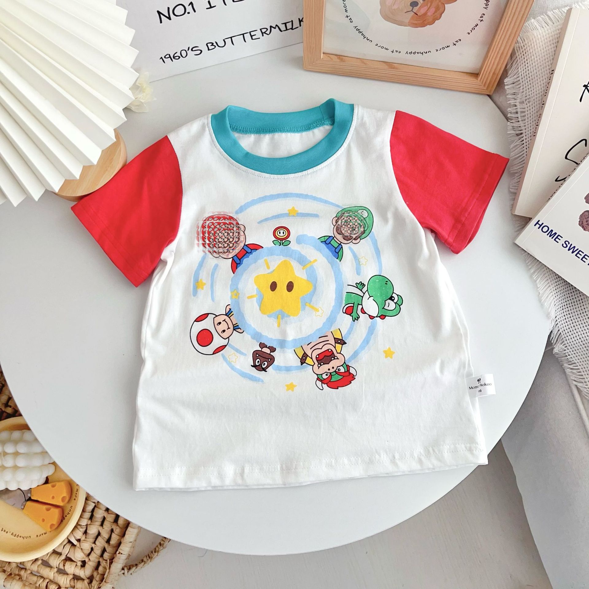 2024 새로운 어린이 여름 티셔츠 소년과 소녀 코튼 T 짧은 소매 귀여운 만화 탑 캔디 컬러 T