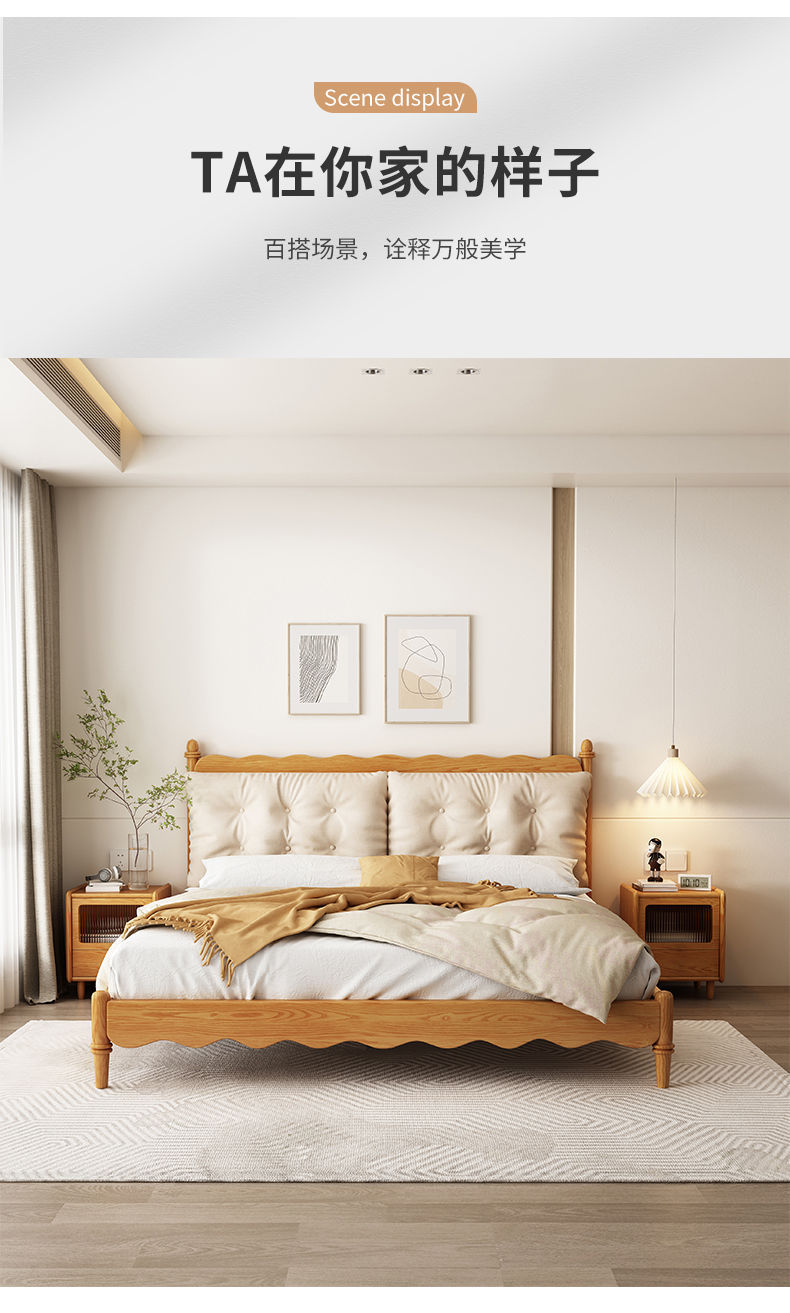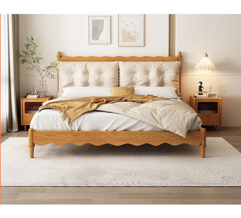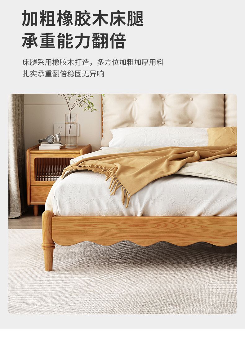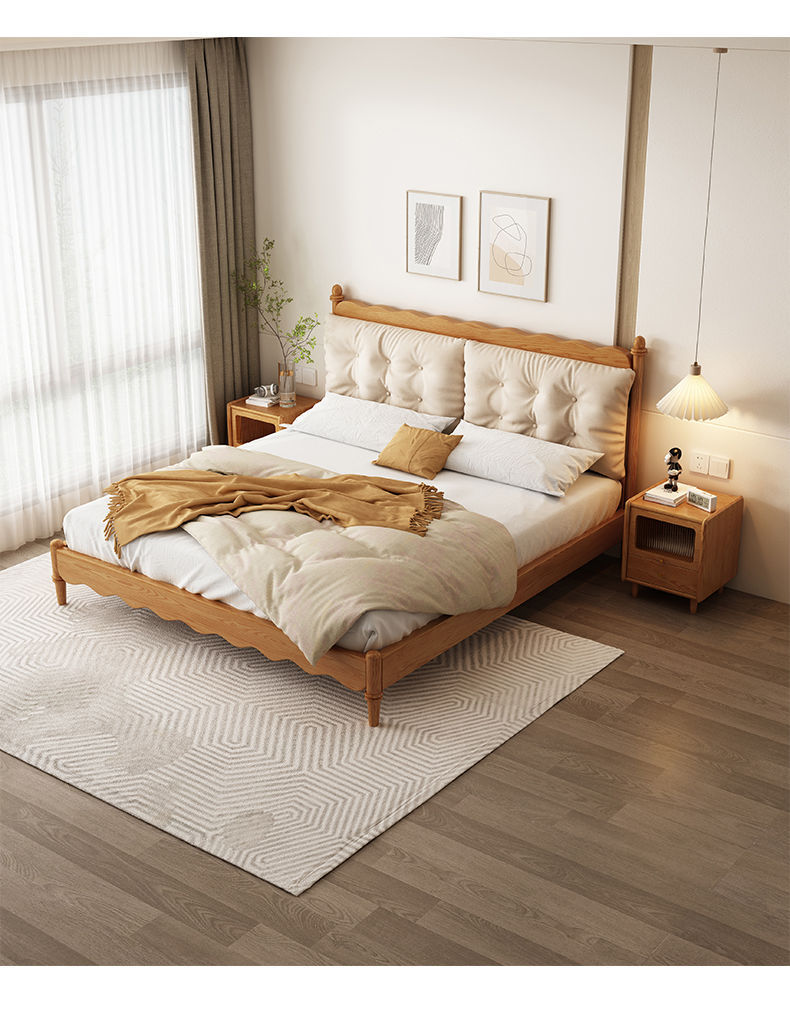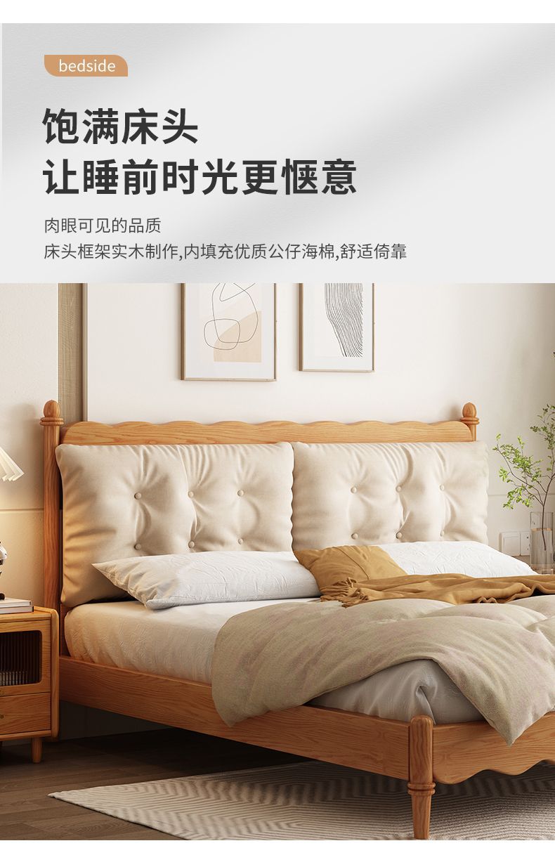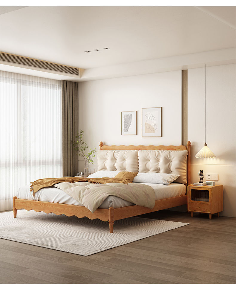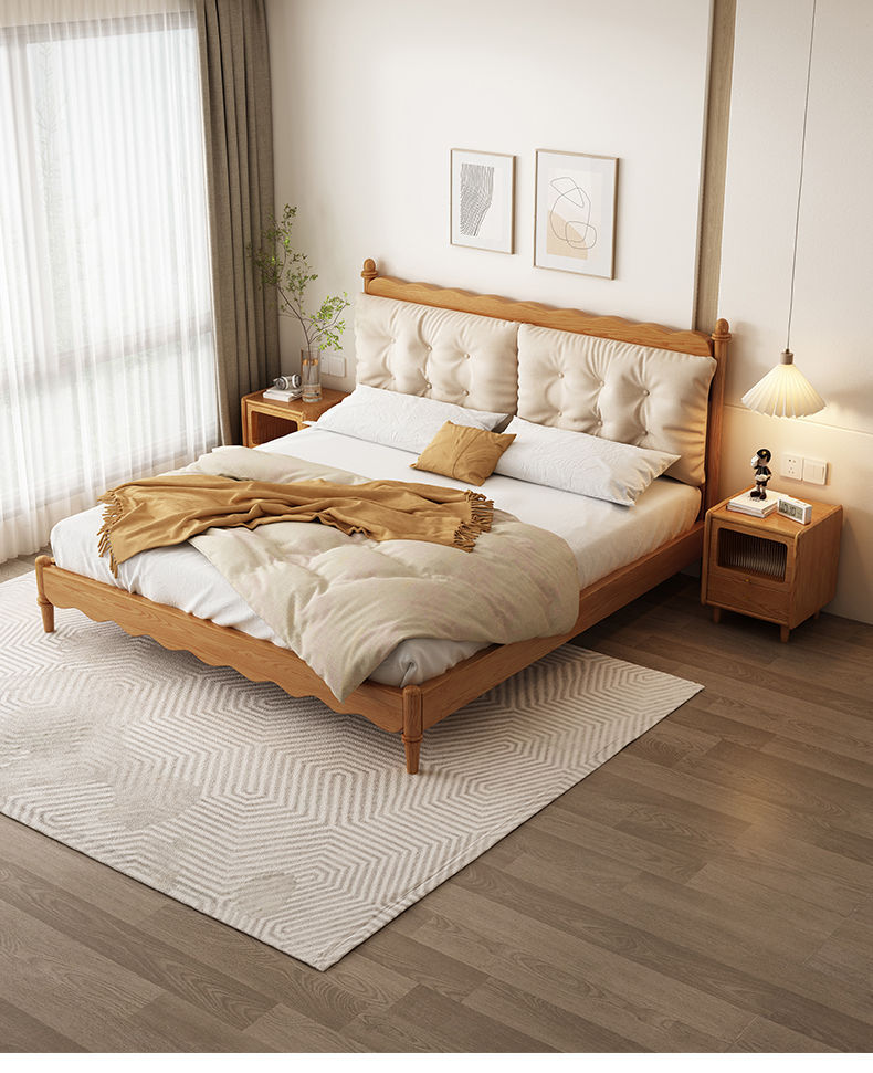 구름 재 코르크 가방 단단한 나무 침대 현대 간단한 통나무 마스터 침실 큰 침대 더블 침대 조용한 스타일 홈스테이