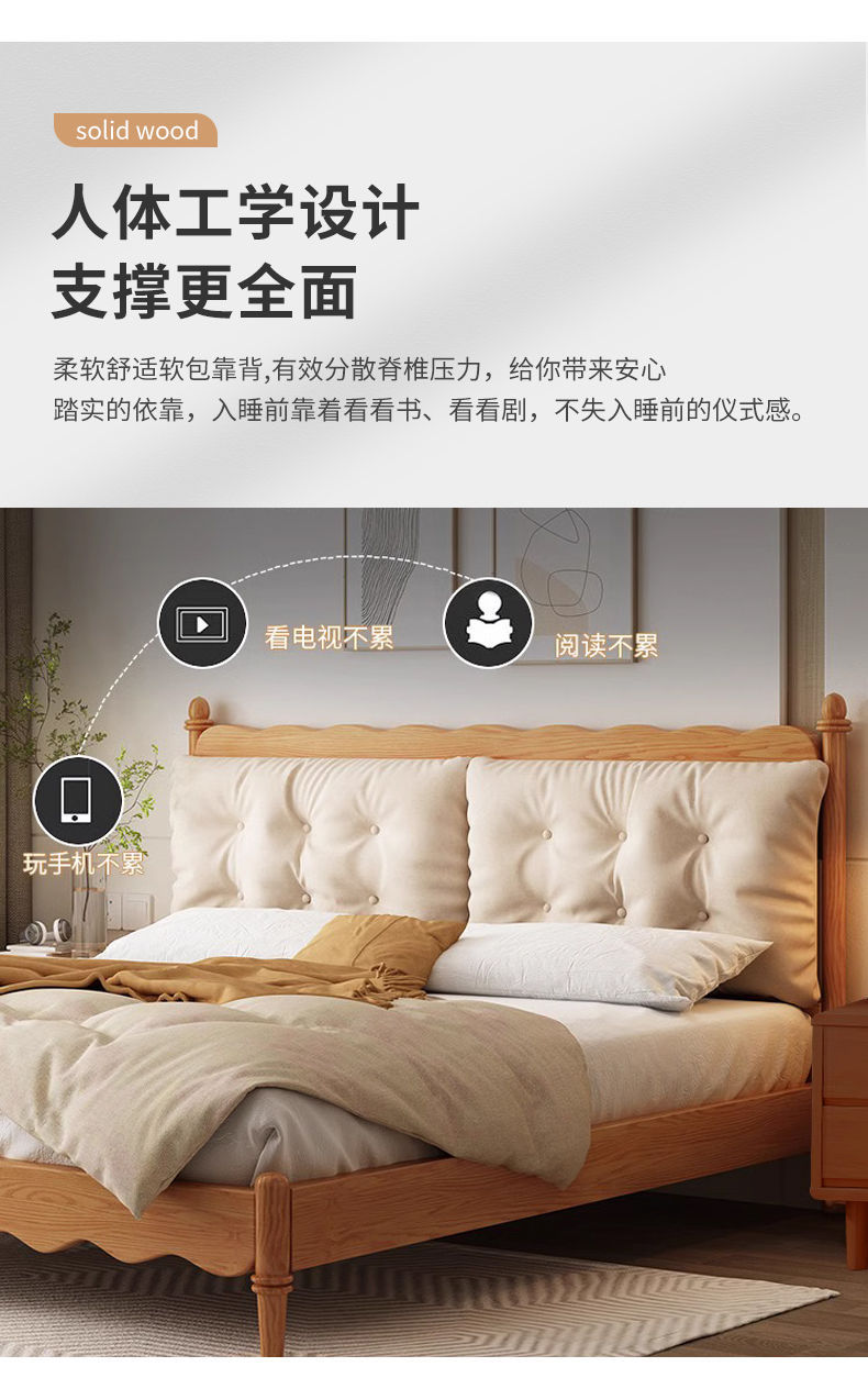 구름 재 코르크 가방 단단한 나무 침대 현대 간단한 통나무 마스터 침실 큰 침대 더블 침대 조용한 스타일 홈스테이스토어 가기
