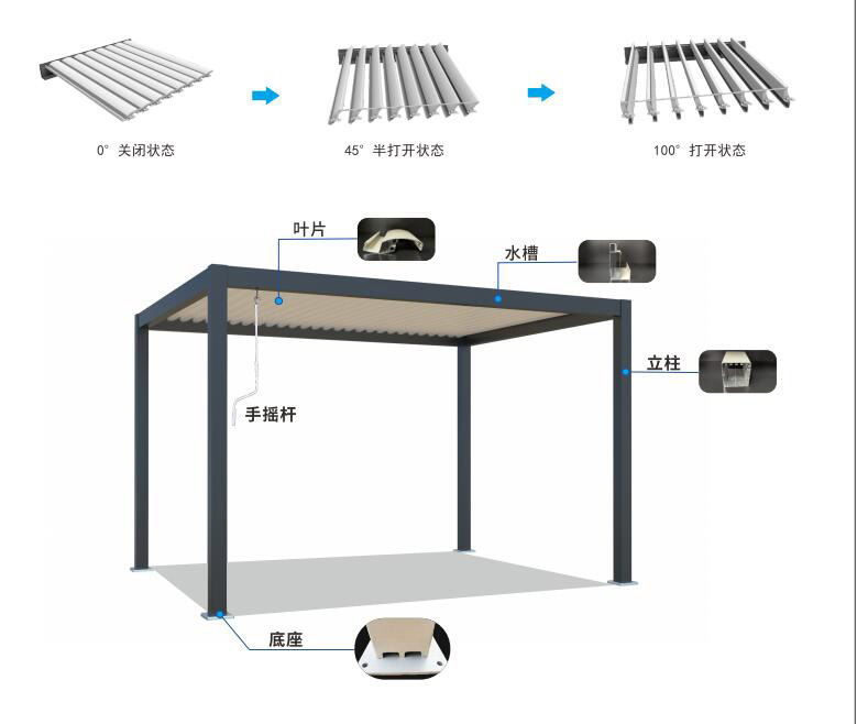 알루미늄 합금 플립 루버 전기 전망대 야외 레저 정원 스마트 차양 태양 방 전망대 야외 차양