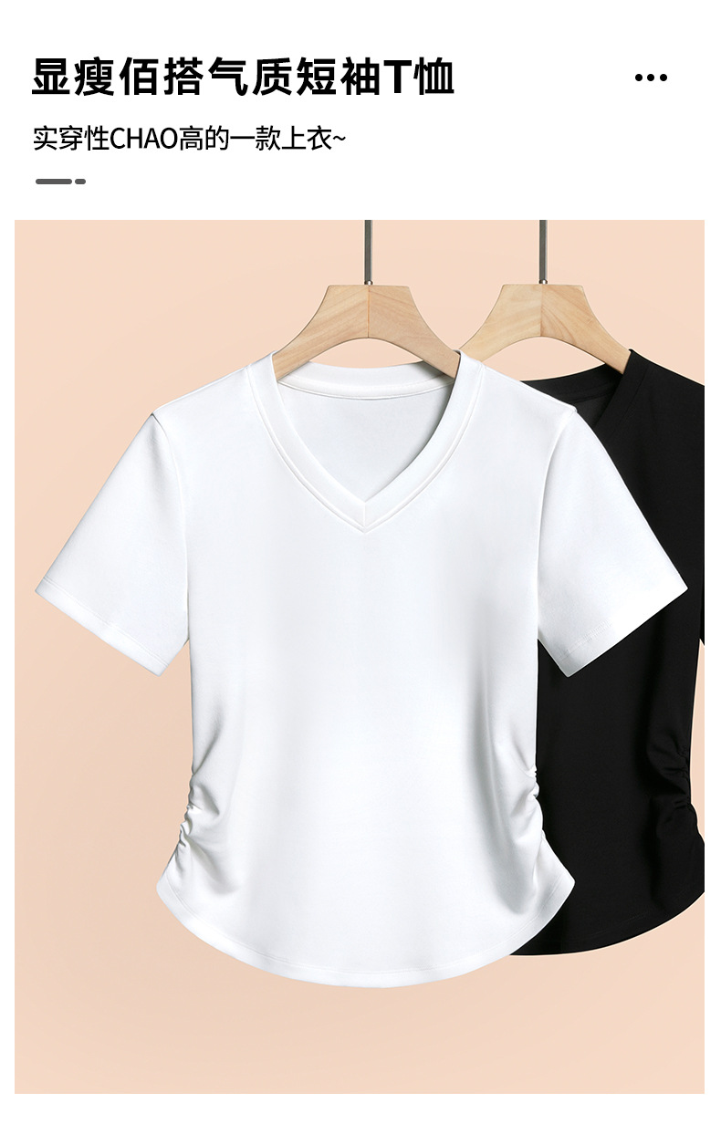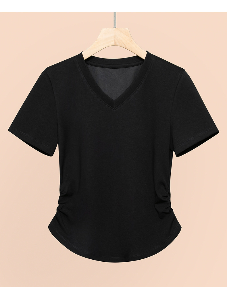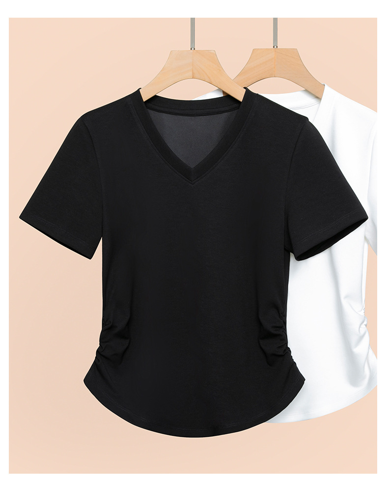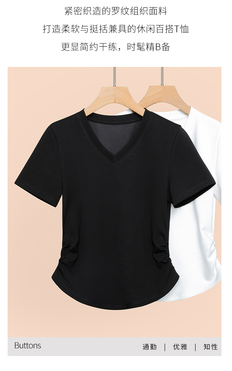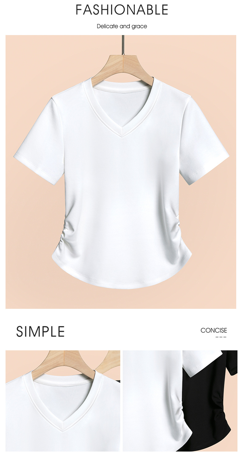 2026년 여름 신상 여성용 V넥 반팔 티셔츠, 활용도 높은 허리라인 슬리밍, 고급스러운 느낌의 탑, 유니크한 인스타 스타일스토어 가기