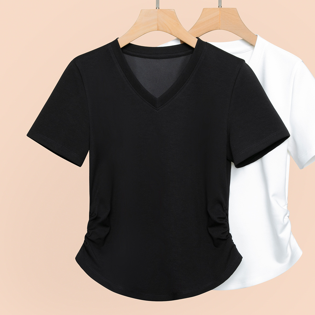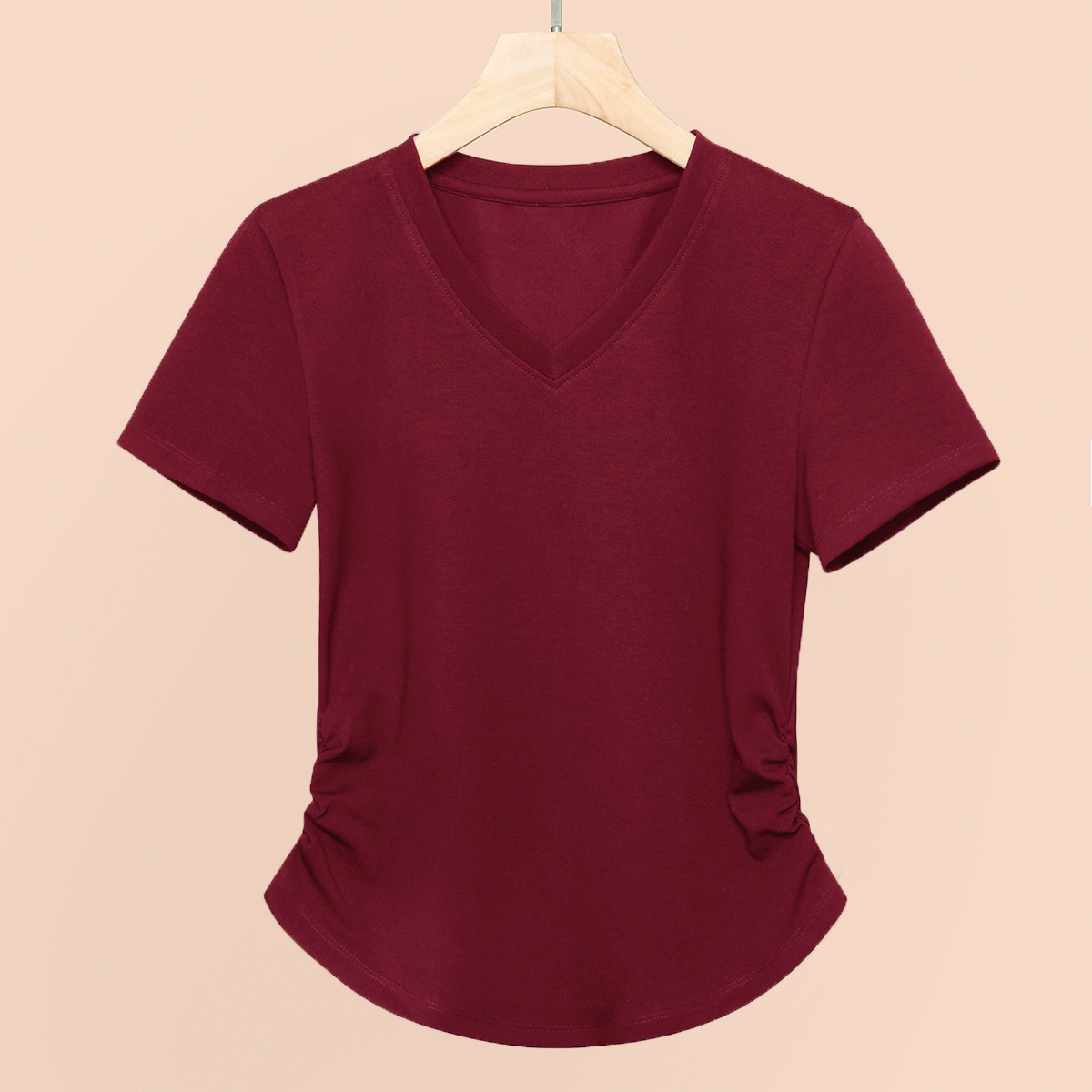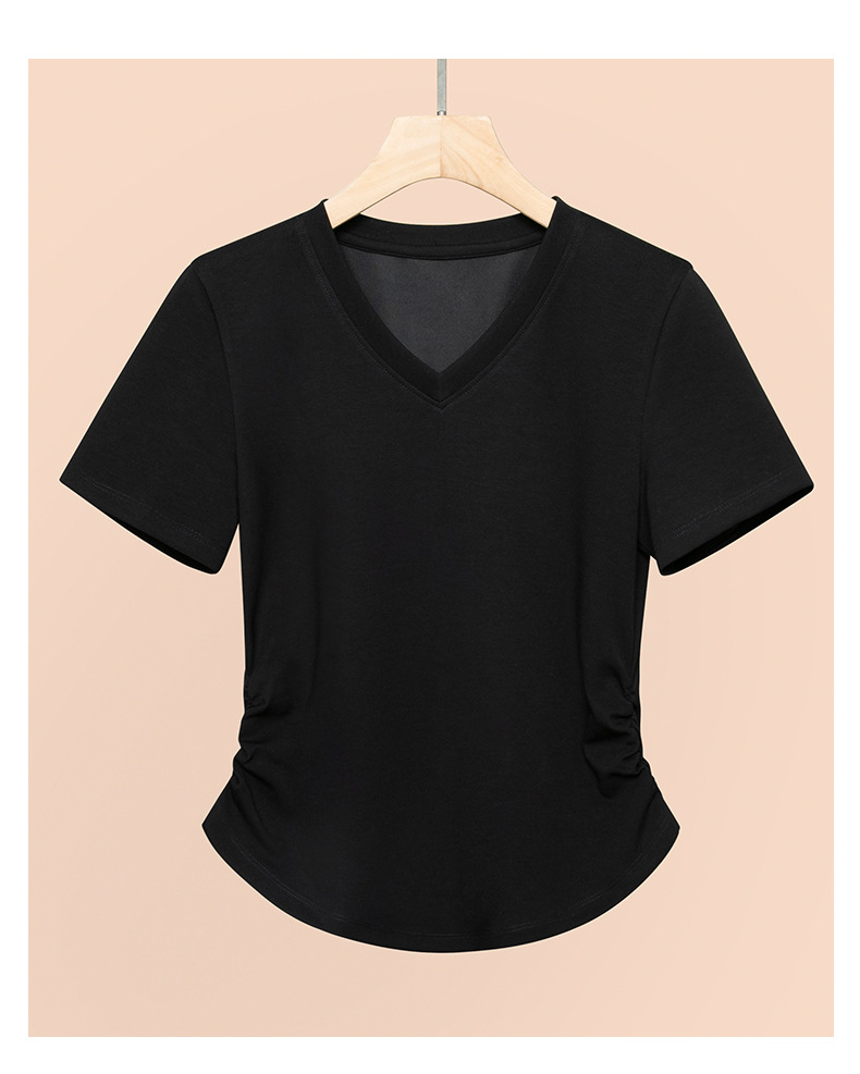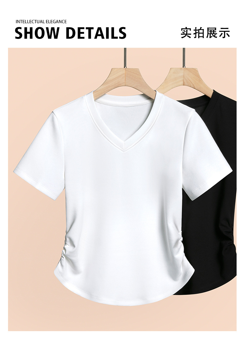 2026년 여름 신상 여성용 V넥 반팔 티셔츠, 활용도 높은 허리라인 슬리밍, 고급스러운 느낌의 탑, 유니크한 인스타 스타일스토어 가기