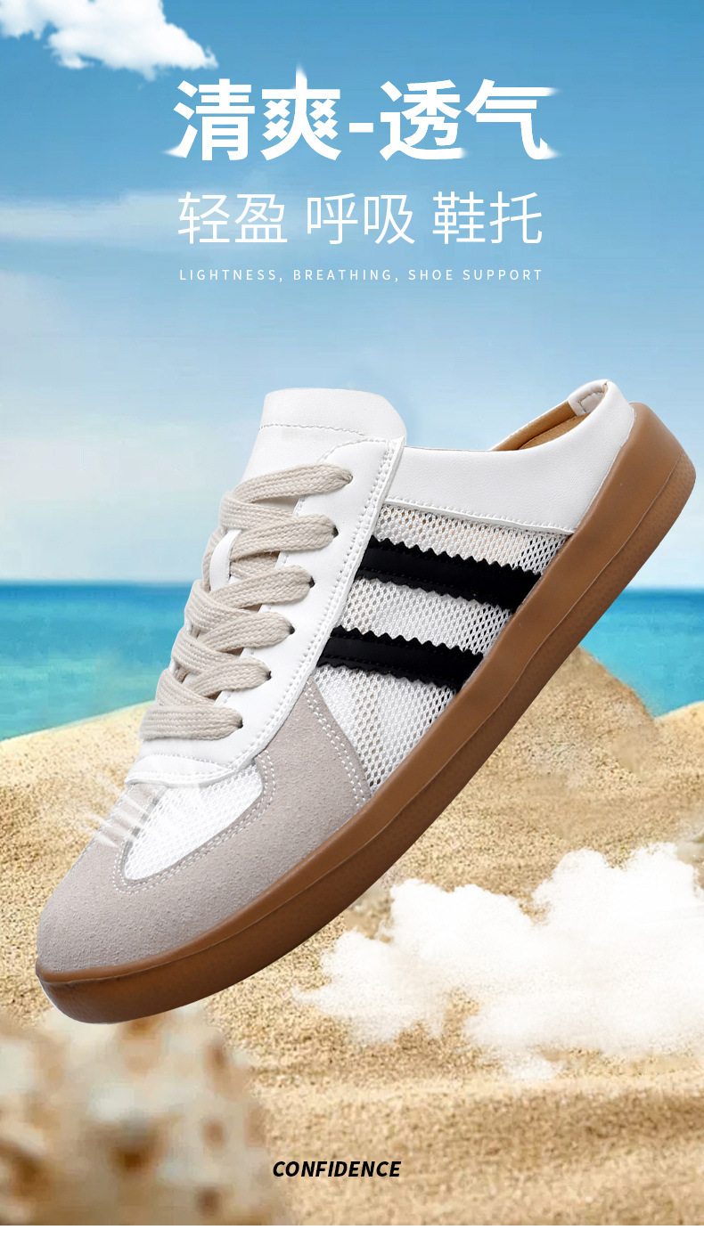 2025년 신상품 크로스보더 봄여름용 외출용 앞코가 막힌 신발, 부드러운 밑창, 통기성 좋은 슬립온 여성용 편안한 캐주얼 반슬리퍼스토어 가기