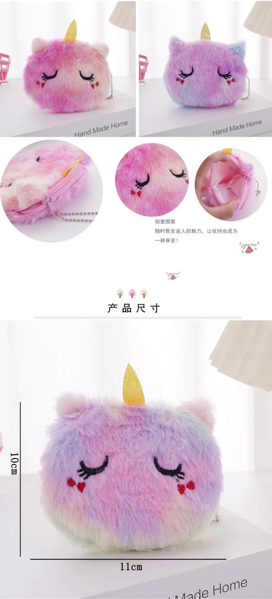 동전 지갑 어린이 귀여운 새끼 고양이 봉제 동전 립스틱 이어폰 가방 휴대용 3 차원 둥근 보관 가방