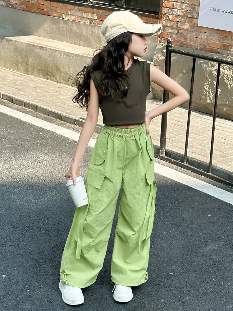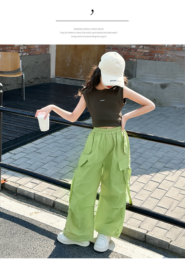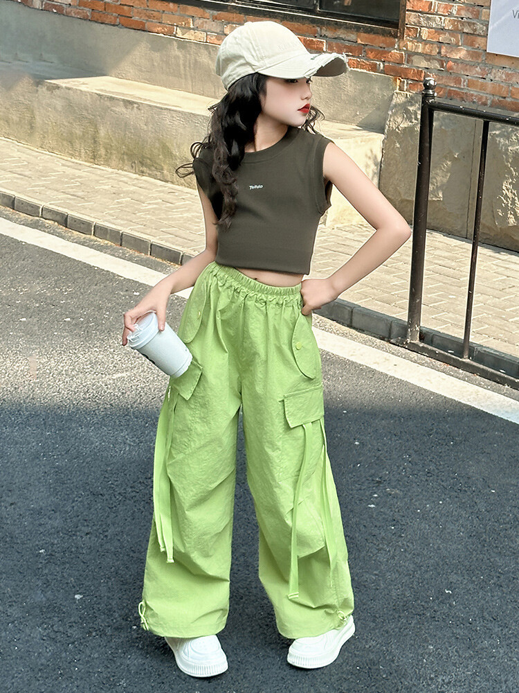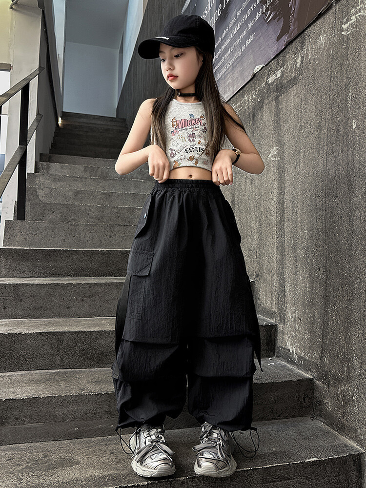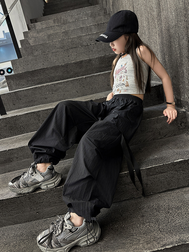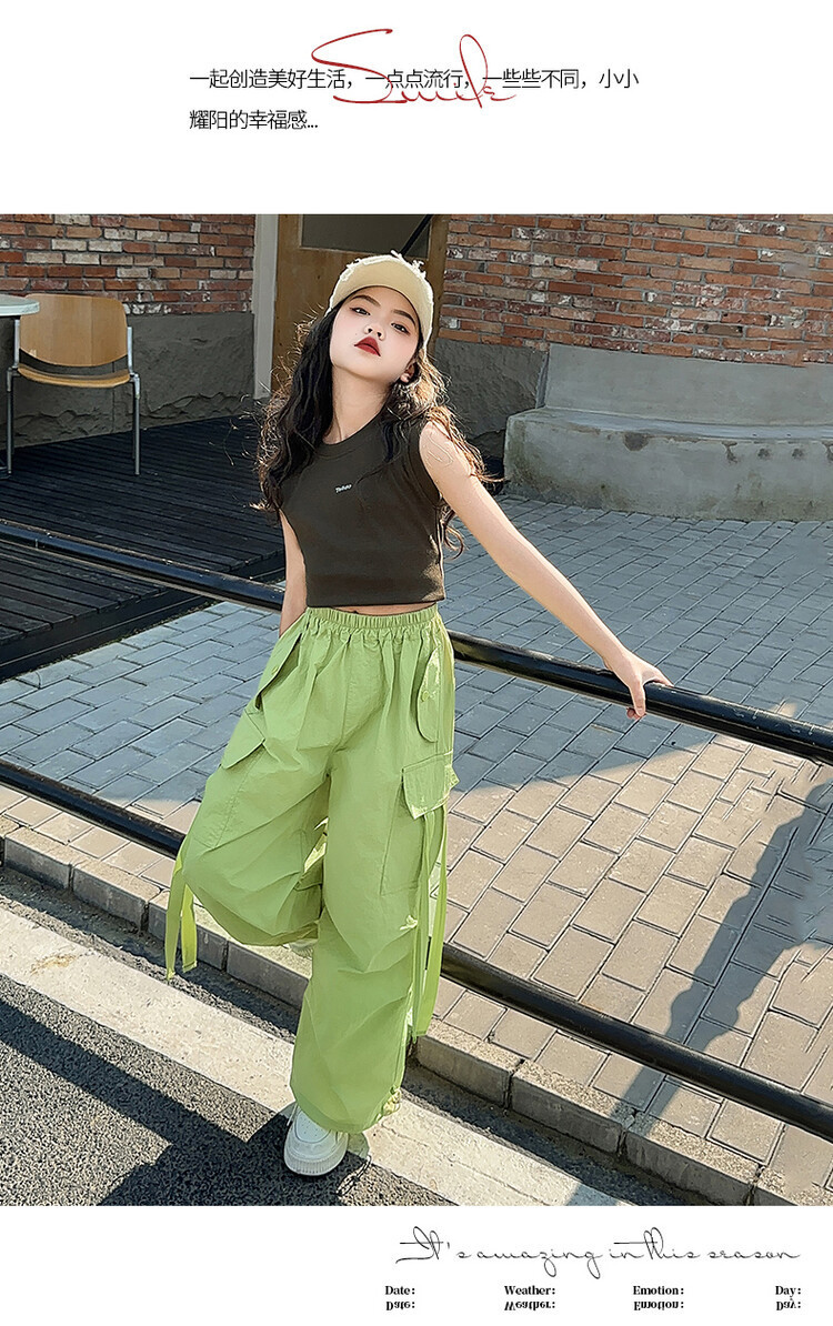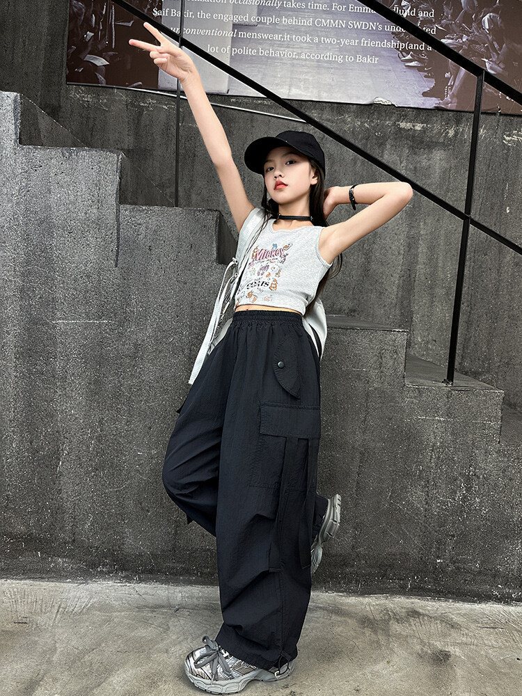 소녀 크로크웨어 바지 조끼 세트 여름 어린이 스트리트 댄스 스포츠웨어 트렌디 쿨 패션 키즈 재즈 댄스 투피스 세트